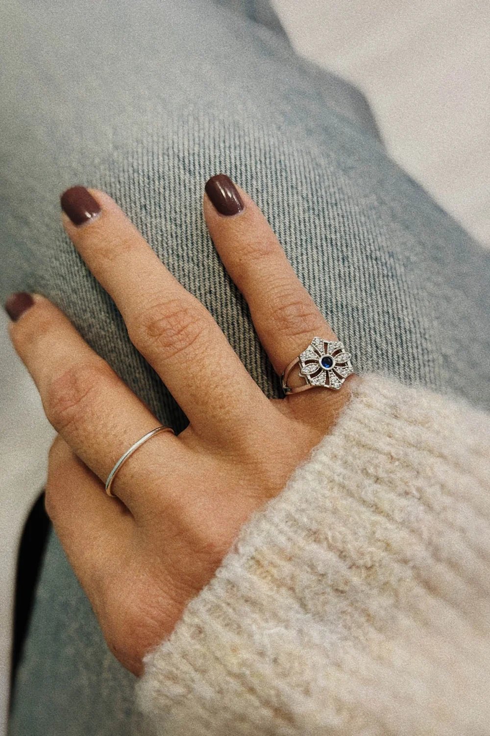 Altıgen Vintage Serçe Parmak Yüzüğü Lacivert | 925 Ayar Gümüş