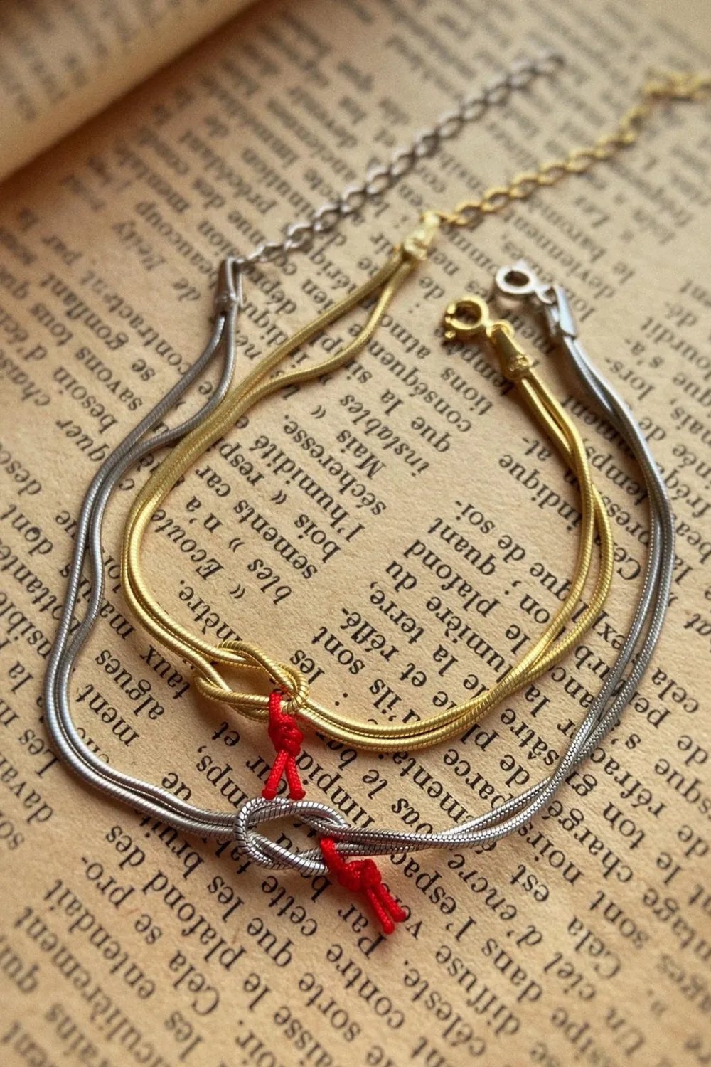 Kırmızı Şans İpli Düğüm Bileklik | 925 Ayar Gümüş