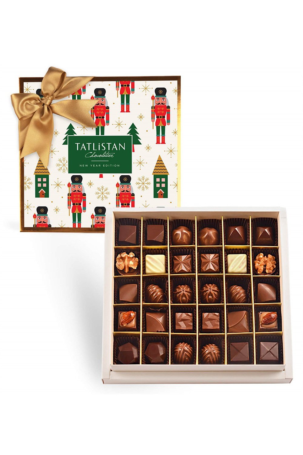22×22 cm yılbaşı tasarımlı kutu içerisinde toplam 500 gr. ağırlığında olmak üzere; 30 adet spesiyal çikolata bulunmaktadır.