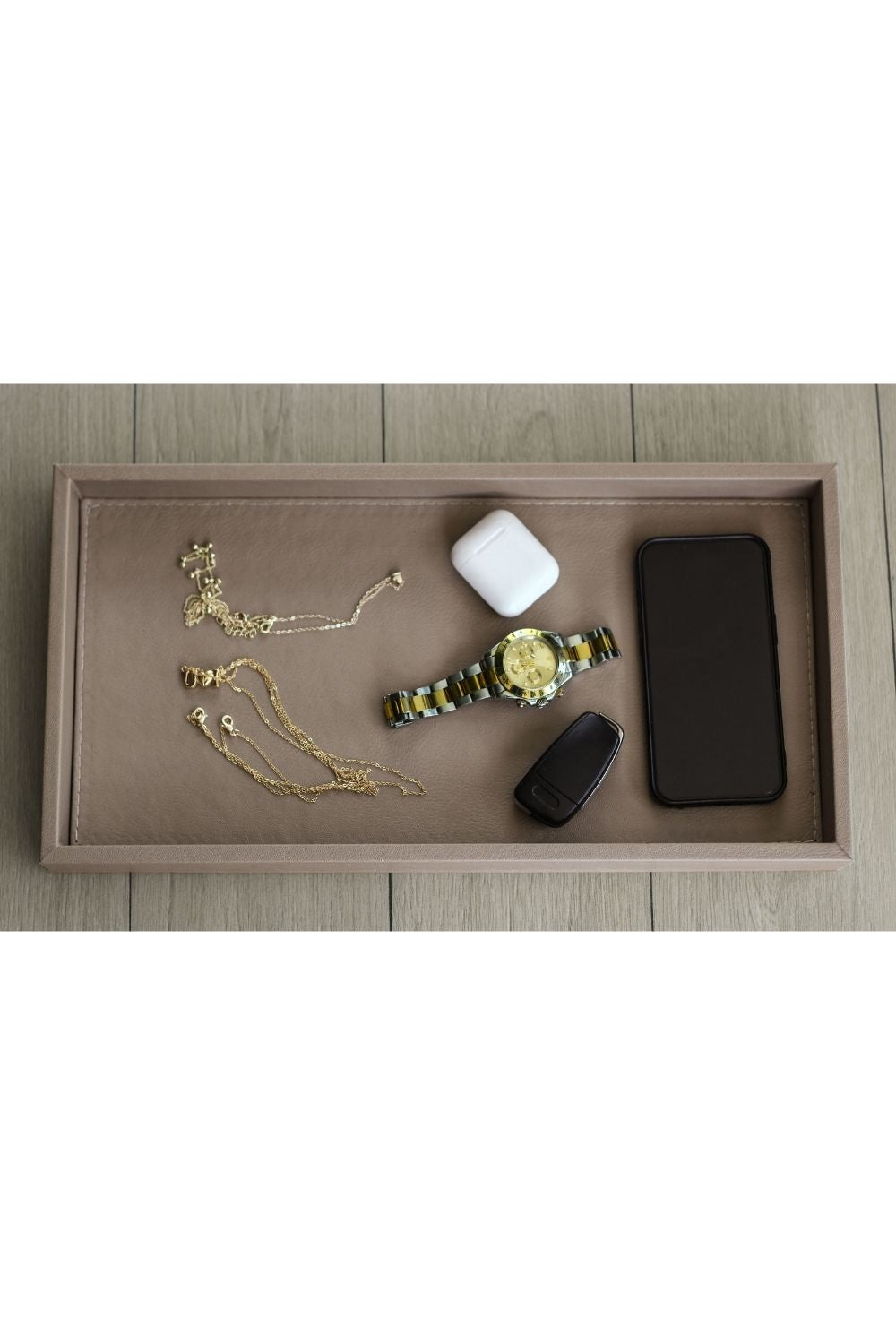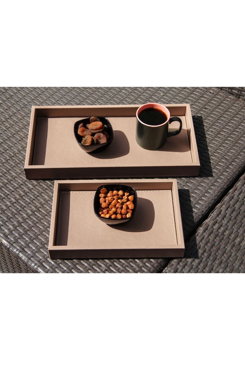 Büyük Boy Camel Renk Suni Deri Tepsi