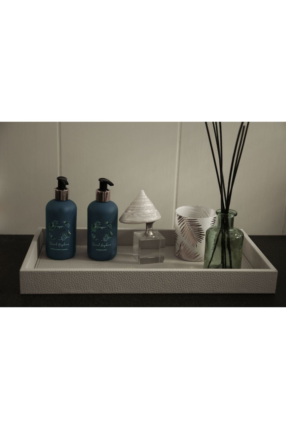 Büyük Boy Krem Renk Suni Deri Tepsi