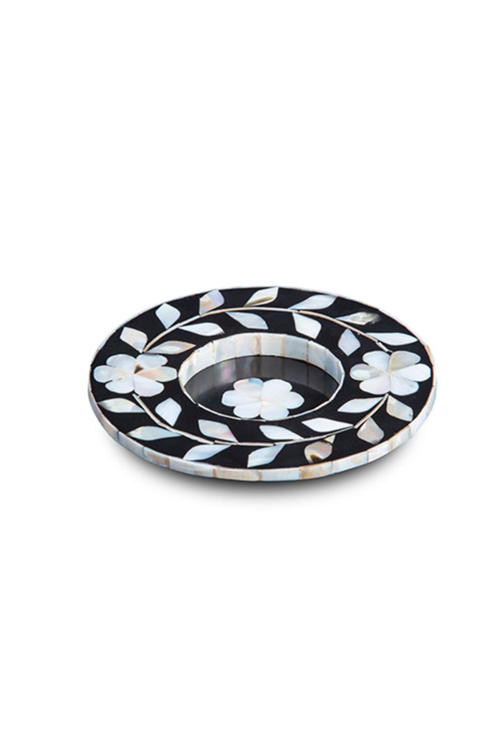 Black Floral Pattern Mother-Of-Pearl Inlay Coasters