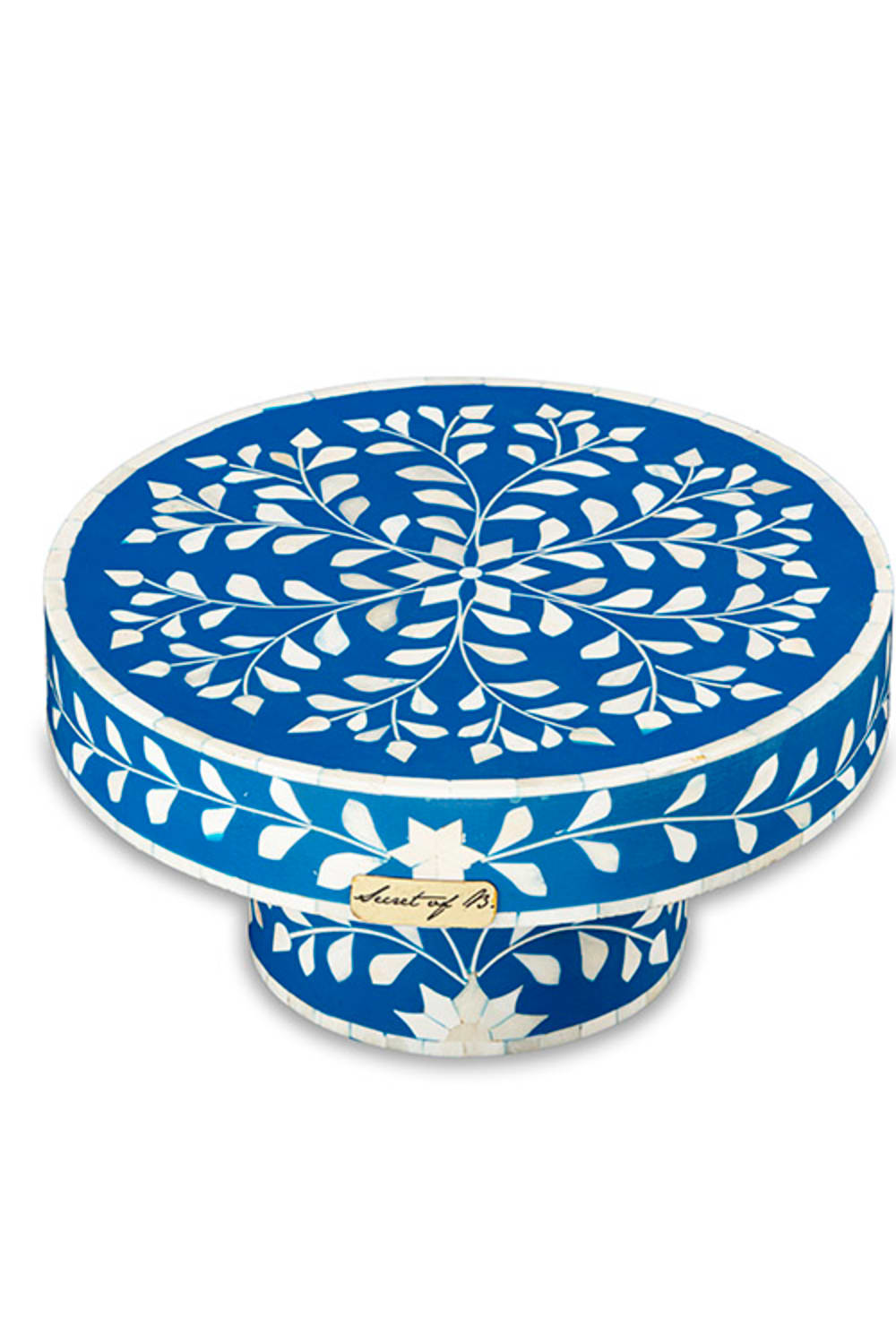 Blue Floral Pattern Mother-Of-Pearl Inlay Cake Stand