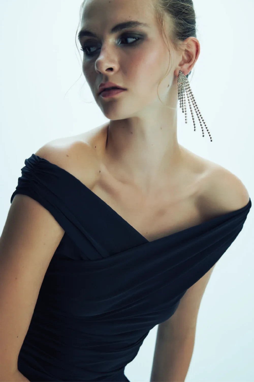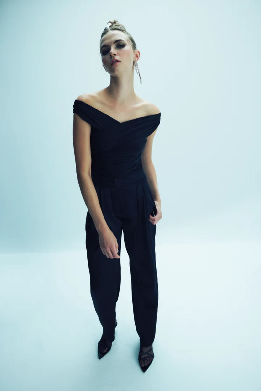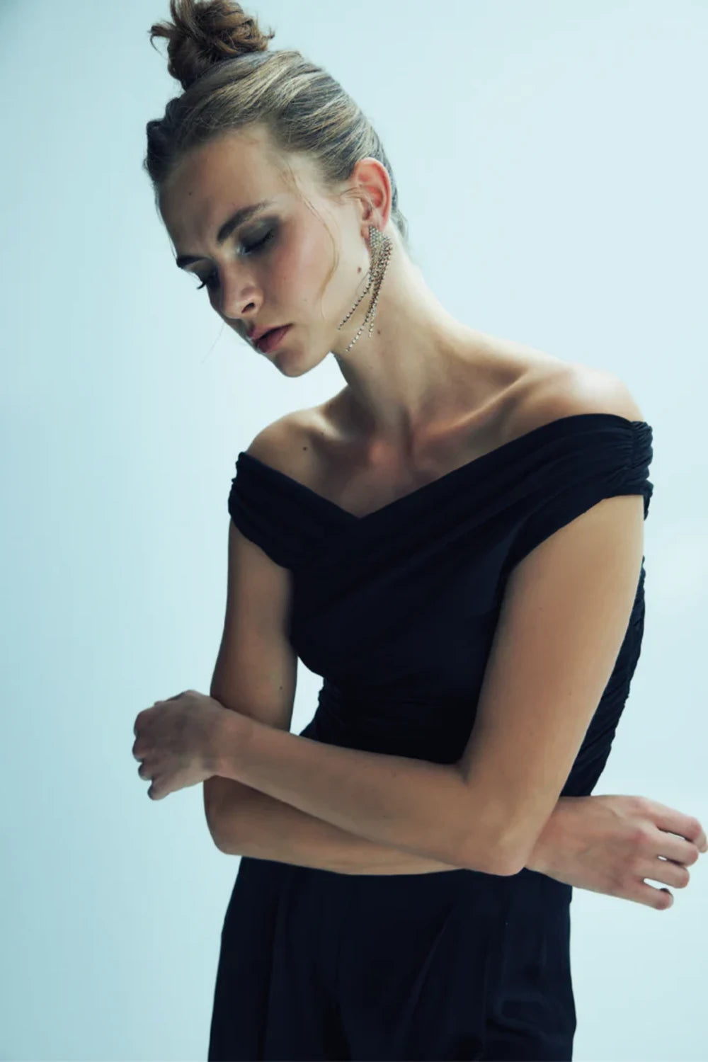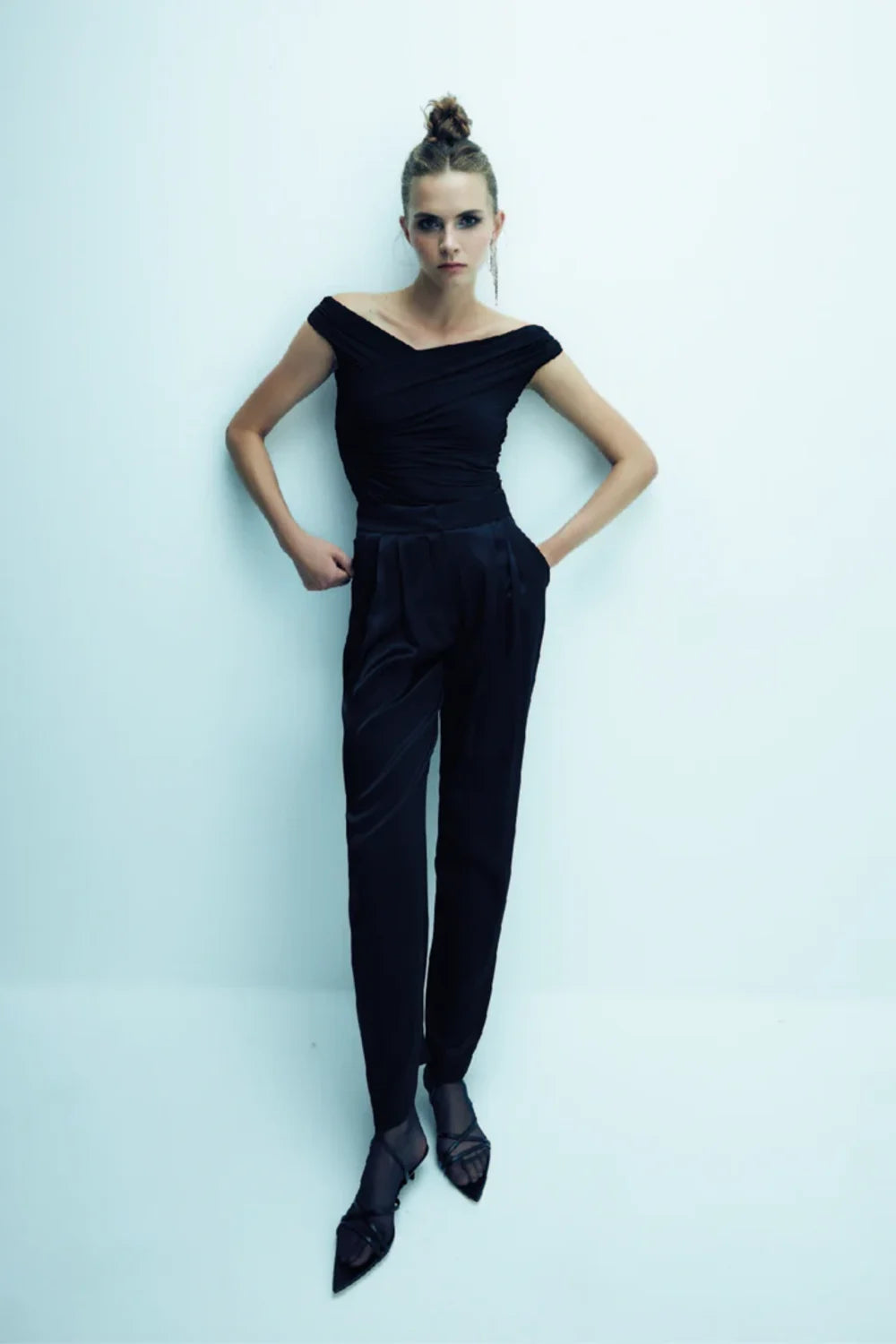 Cheri bluz, siyah jarse kumaşı ve göğüsü saran kesimiyle dikkat çekiyor. Şık ve zarif tasarımıyla, gardırobunuzun vazgeçilmez parçalarından biri olacak. Göğüsü sararak vücuda hoş bir şekil veren bu bluz, Tina Saten Pantolon ile mükemmel bir kombin oluşturuyor. Hem günlük kullanımda hem de özel davetlerde kendinizi şık ve özgüvenli hissetmenizi sağlayacak, tarzınıza sofistike bir dokunuş katacak.