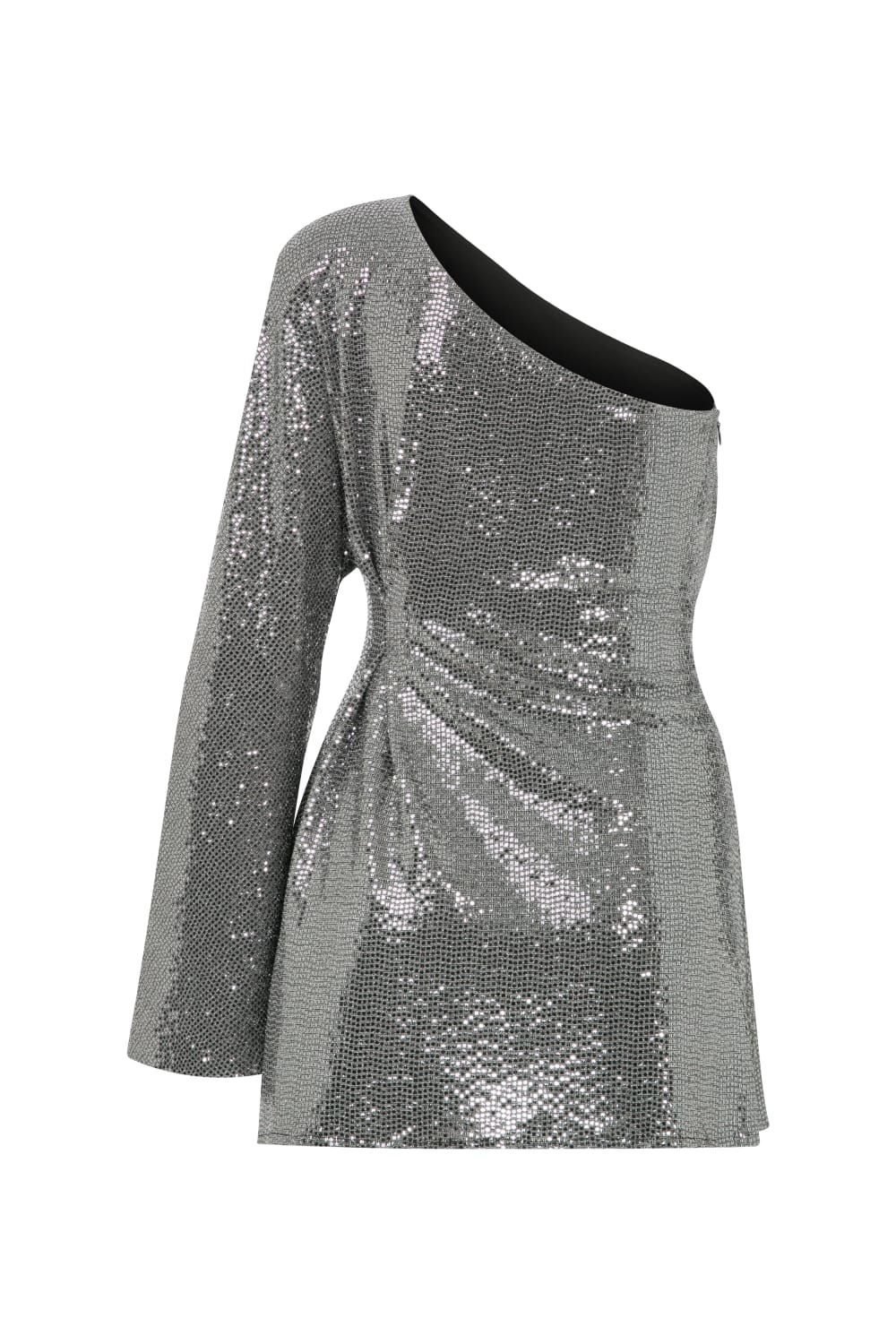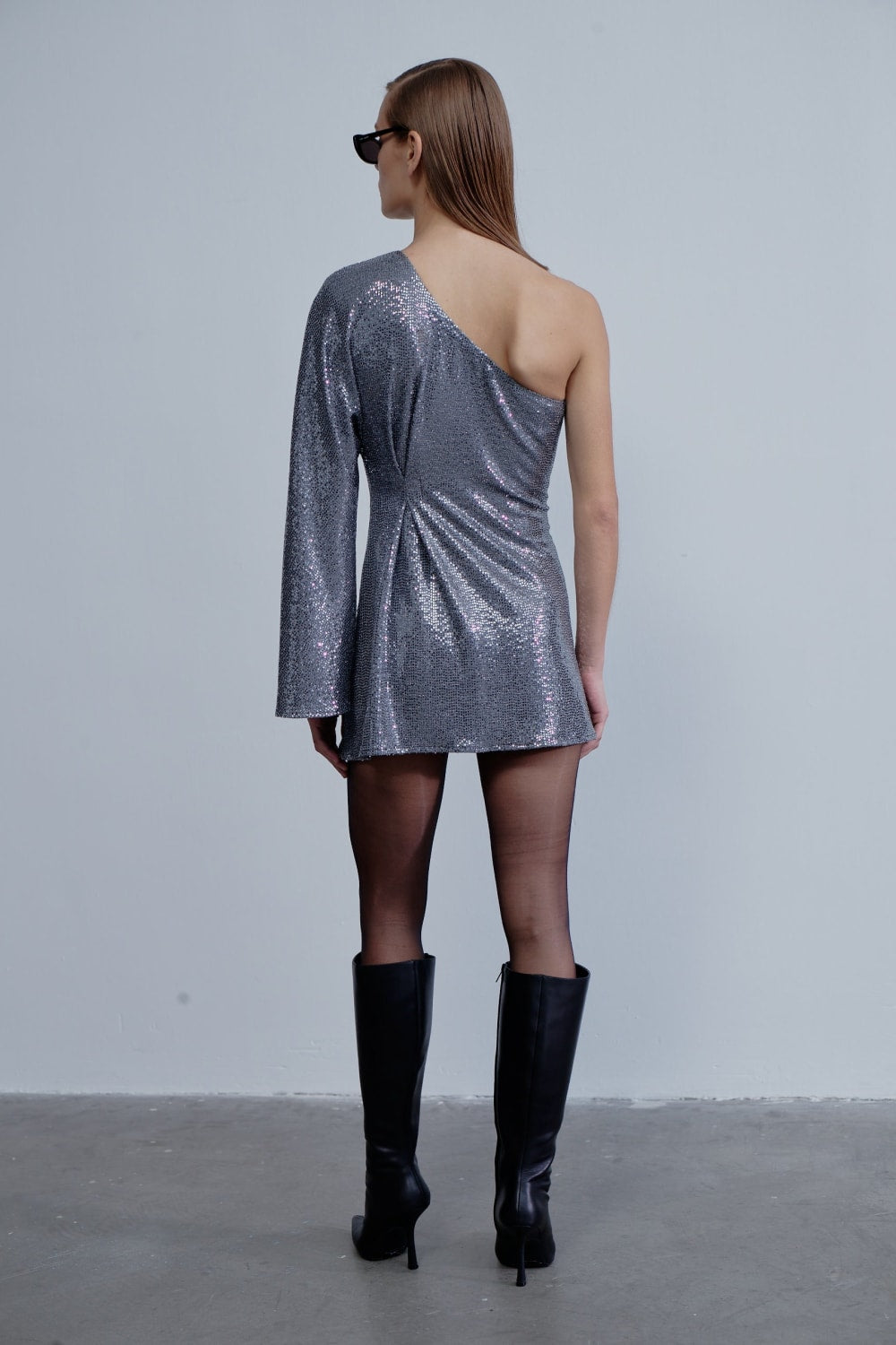Emerald Tek Omuzlu Payetli Mini Elbise