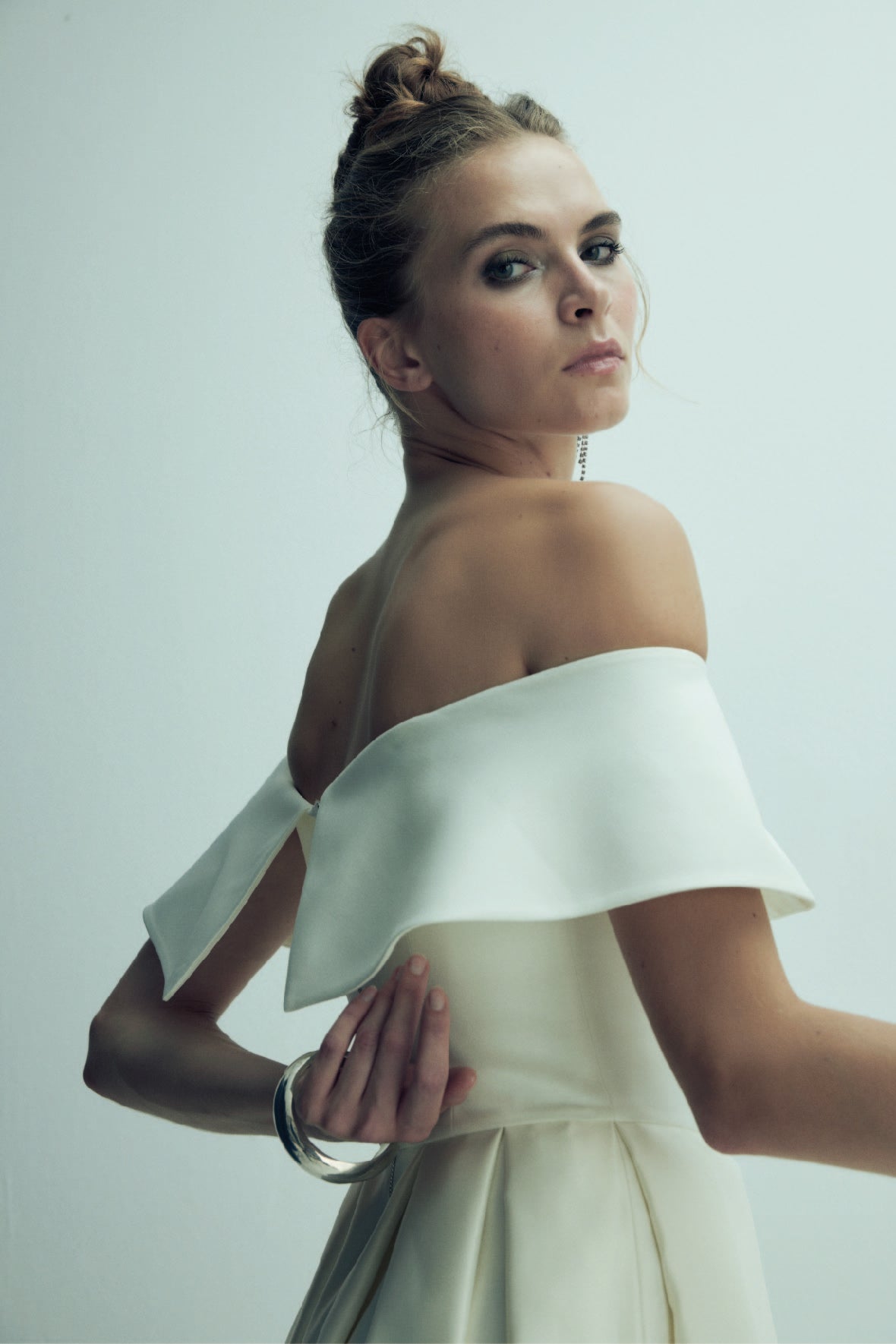 Ivy elbise, beyaz rengi ve özel detaylarıyla düğün ve nikah gibi özel günler için mükemmel bir seçenek sunuyor. Bu zarif mini elbise, omuz detayı ve göğse oturan tasarımıyla dikkat çekiyor. Önü göğüs bölgesinde oturan ve arkada fermuarla kapanan detayı, elbiseye modern bir dokunuş katarken, beyaz rengi ise saf ve masum bir görünüm sağlıyor. Bu elbiseyle tarzınızı ve zarafetinizi ön plana çıkararak özel günlerinizde unutulmaz bir izlenim bırakabilirsiniz.