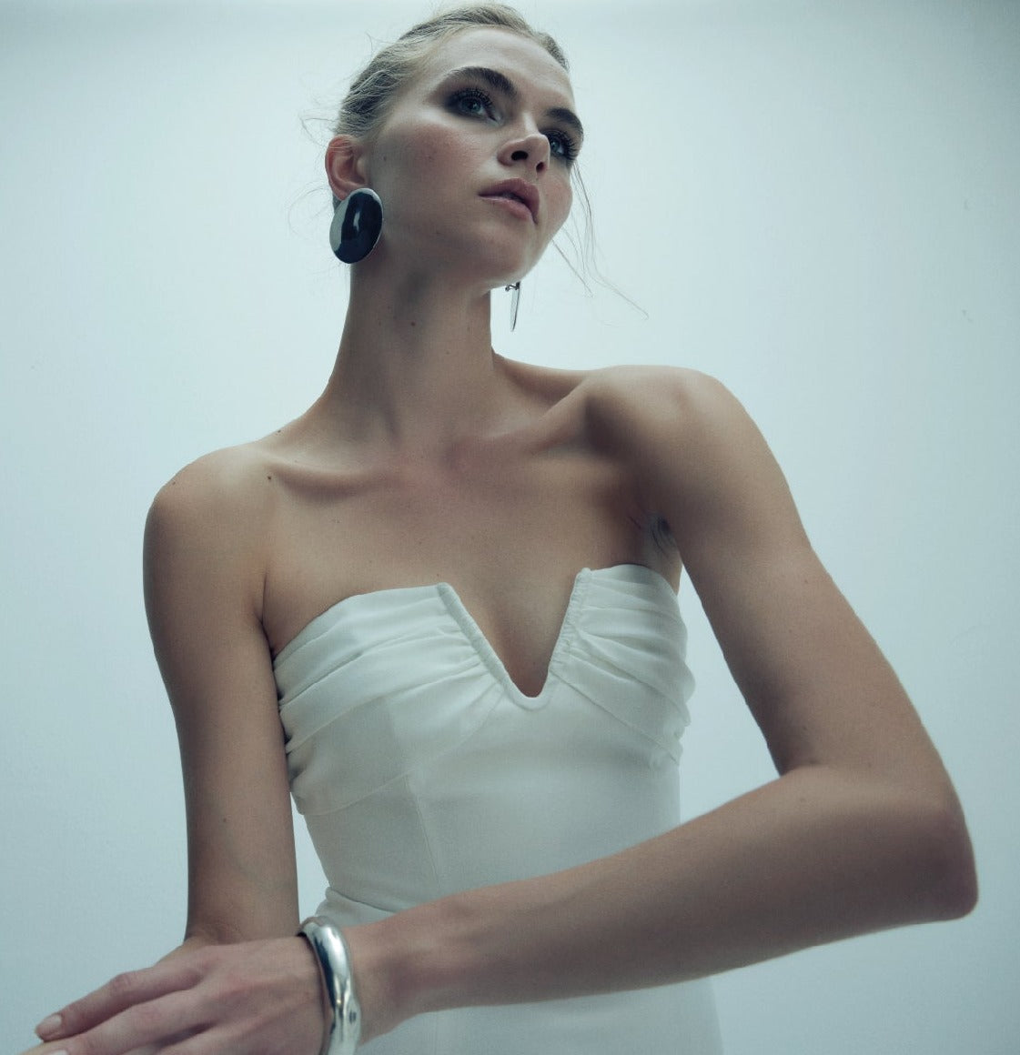 Miora Mini Krep Elbise, Straplez tasarımı ve göğüste bulunan büzgü detayıyla dikkat çekerken, düğün ve nikah gibi özel günler için ideal bir alternatif sunar. Vücudu saran yapısıyla figürü güzel bir şekilde vurgularken, arkadan fermuarlı olması da kullanımı kolaylaştırır. Ayrıca, uzun boyu da bulunan bu model, farklı tercihlere hitap eder. Miora elbise, zarafeti ve şıklığı bir araya getirerek unutulmaz bir görünüm sunar.