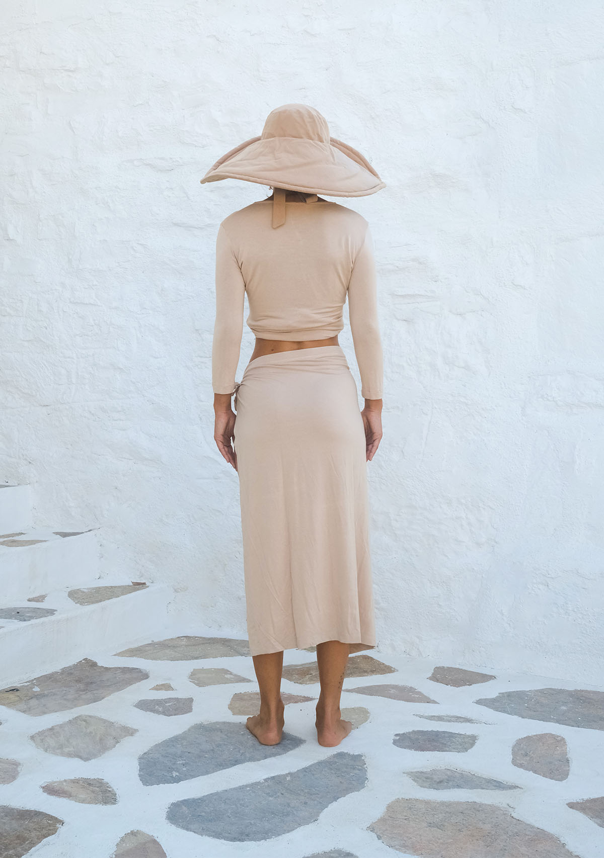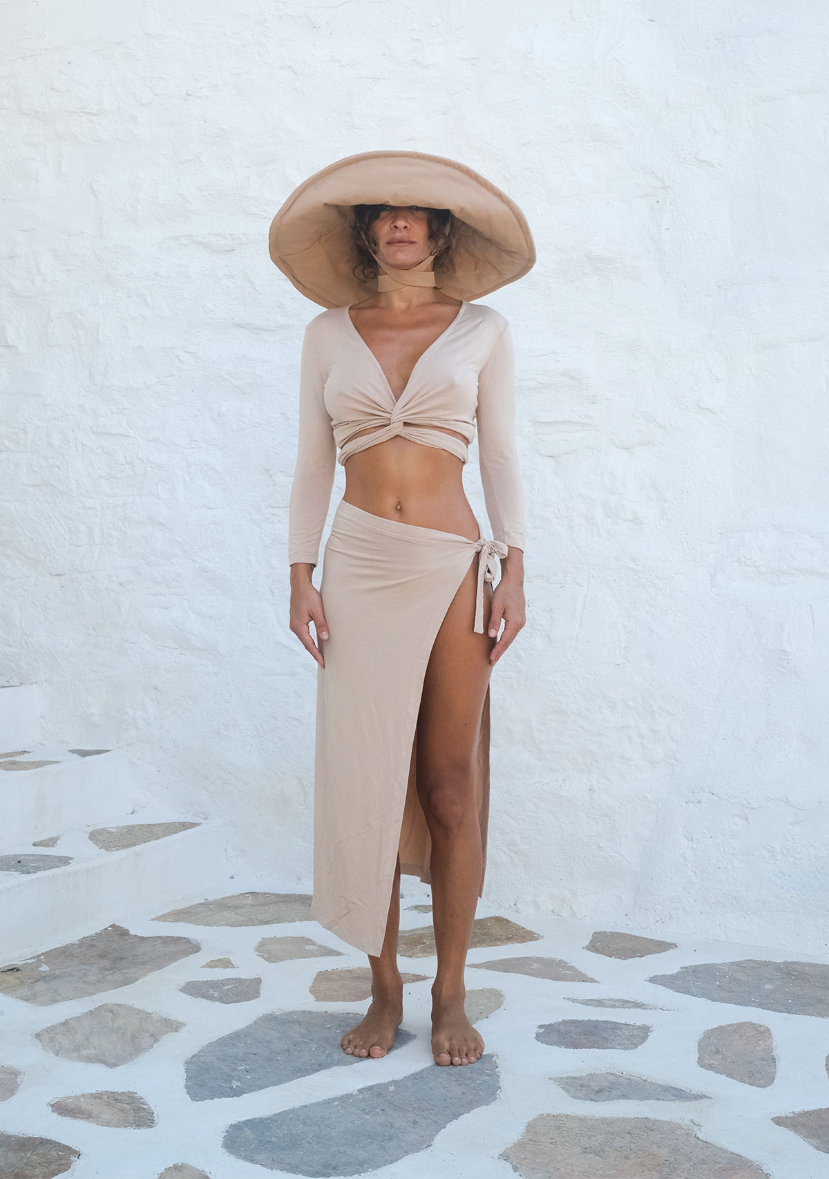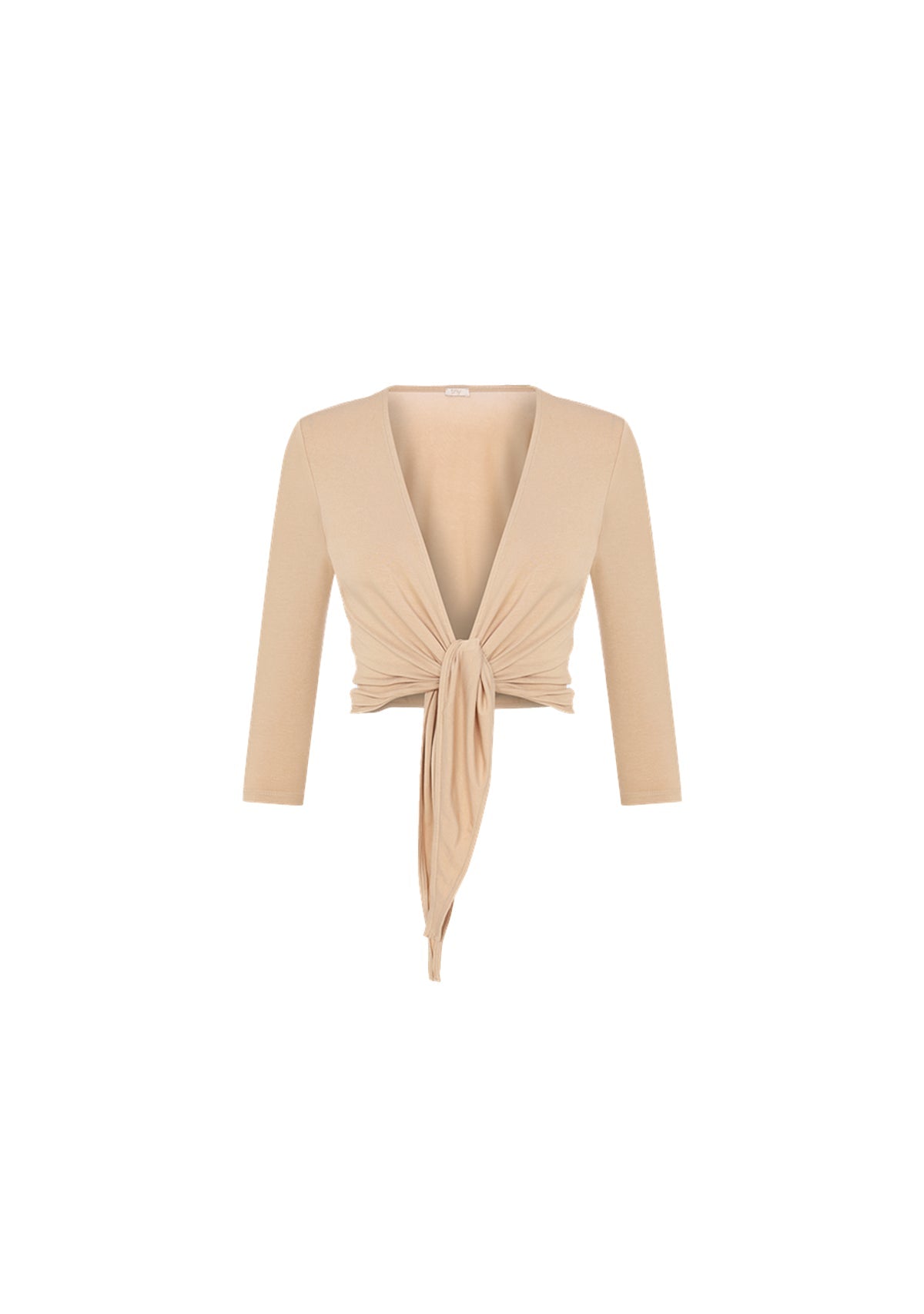 Bağlamalı Uzun Kollu Kısa Nude Bluz