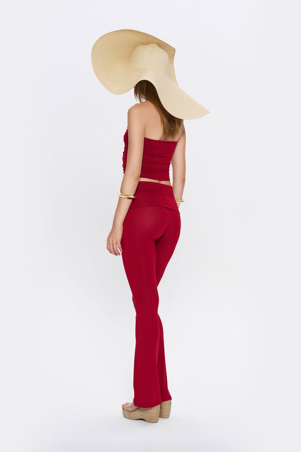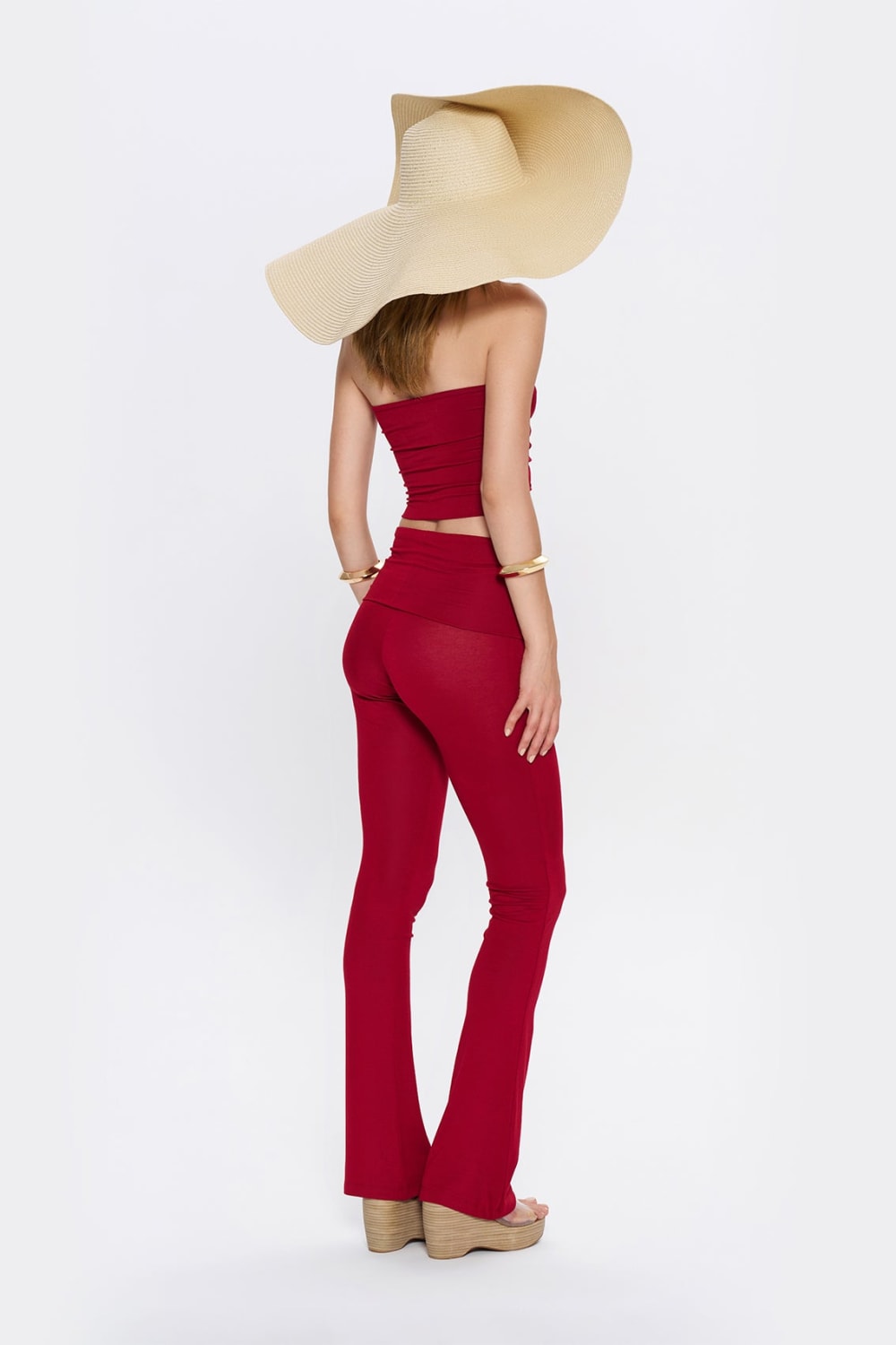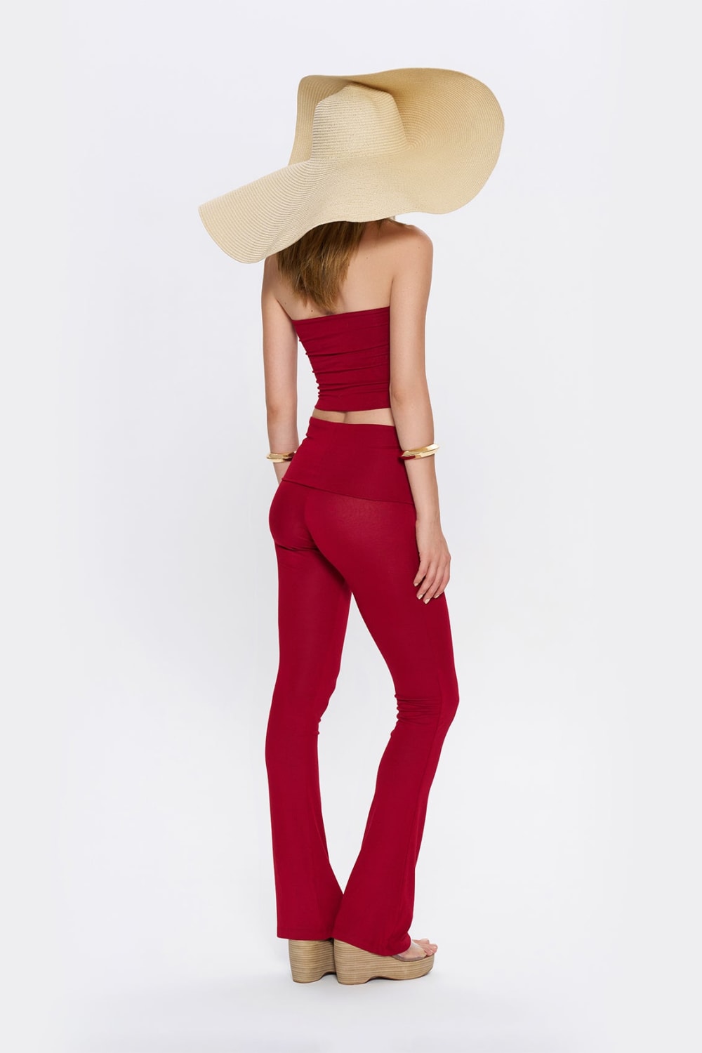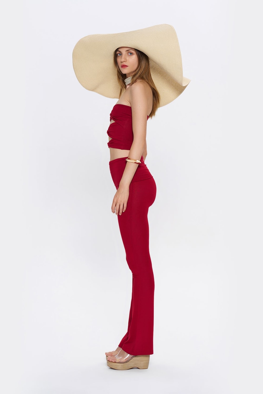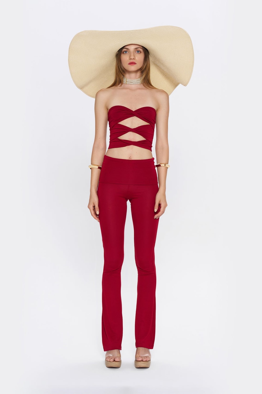 - Çapraz Bant Detaylı Straplez Bordo Büstiyer, vücudu saran yapısıyla hem konforlu hem de şık bir görünüm sağlıyor.