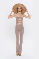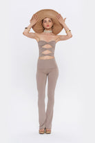 Çapraz Bant Detaylı Straplez Açık Kahverengi Büstiyer