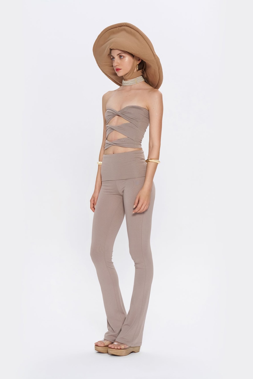 - Çapraz Bant Detaylı Straplez Açık Kahverengi Büstiyer, vücudu saran yapısıyla hem konforlu hem de şık bir görünüm sağlıyor.