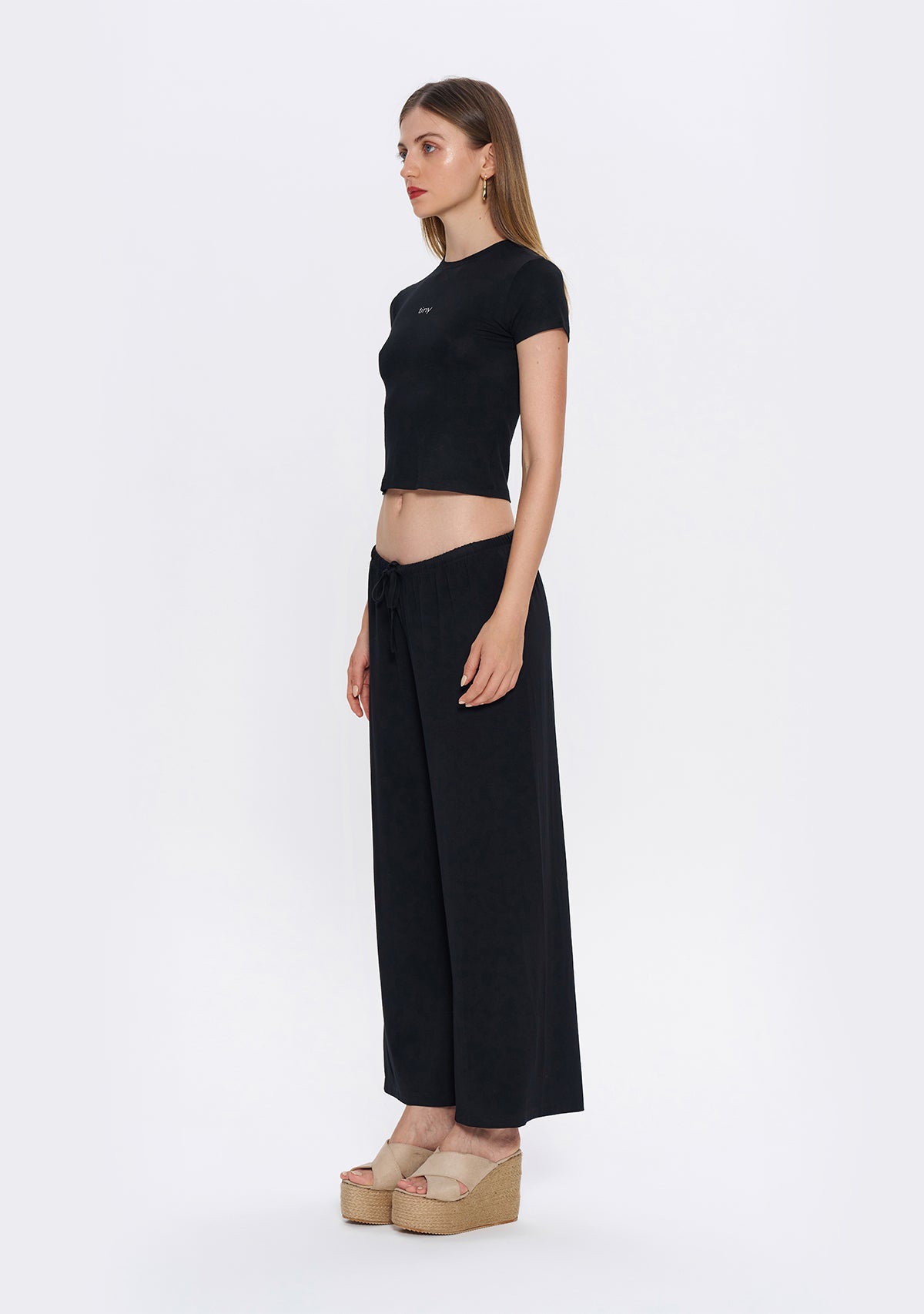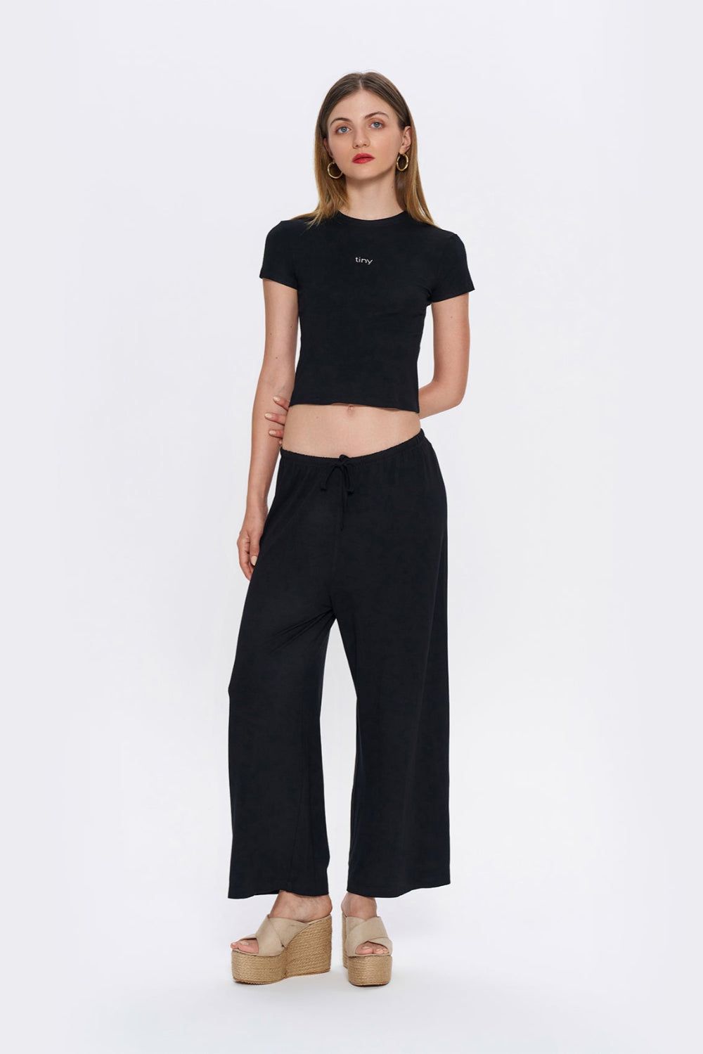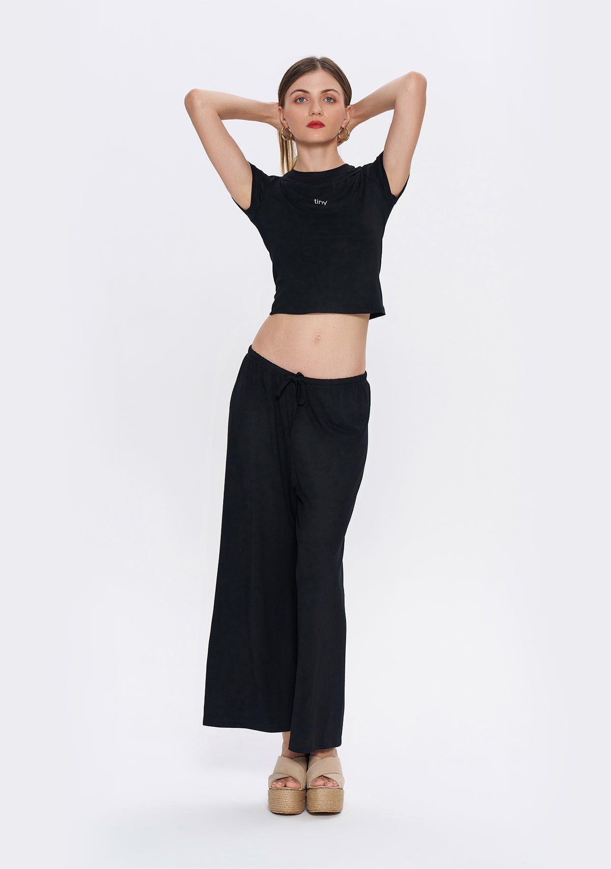 - Pamuklu kumaşı ile gün boyu rahatlık sunan Dar Kesim Siyah Tişört, vücuda oturan kesimiyle zamansız bir şıklık vaat ediyor.