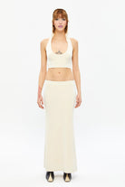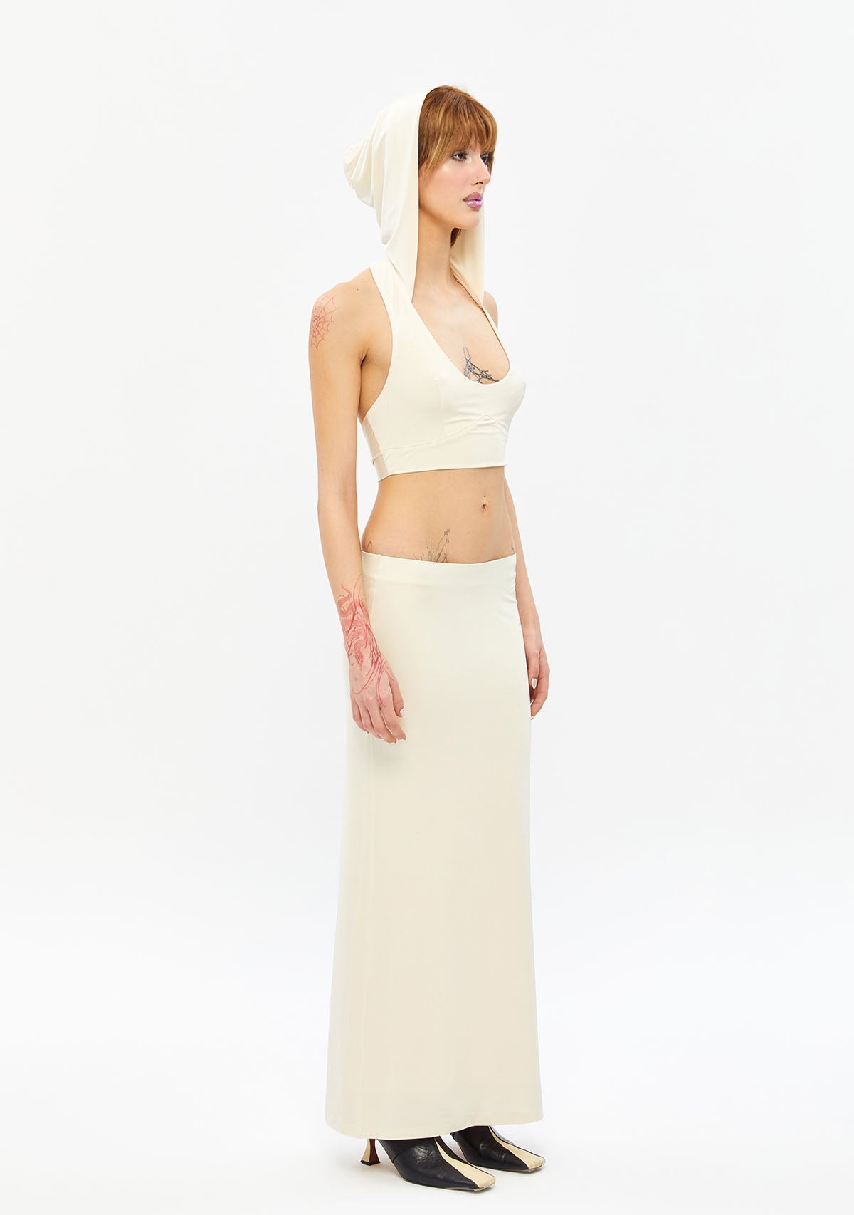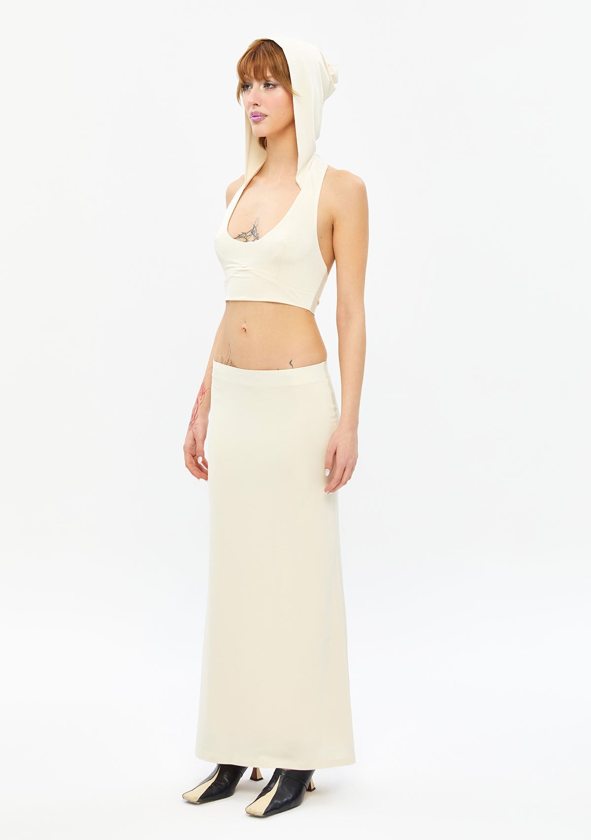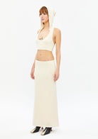 - Düşük bel, esnek kumaşlı bileğe kadar uzun etek, her tarza uyum sağlamak üzere tasarlandı. İster oversize bir kazakla, ister crop top bir bluzla… Ancak bizim favorimiz onu Kapüşonlu Beyaz Crop Top ile olan kombini.