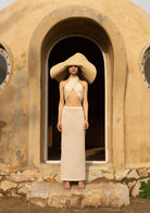 - Karnınızı, omuzlarınızı ve sırtınızı ortaya çıkaran elbise, bileğe kadar uzun boyuyla bacaklarınızı kapatır.