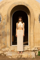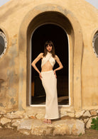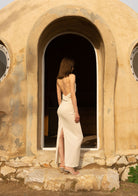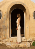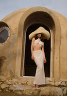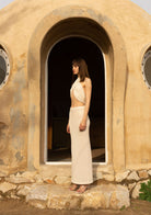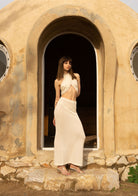 Si Önü Çapraz Boyundan Bağlamalı Krem Triko Elbise