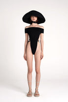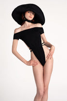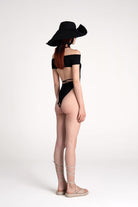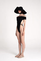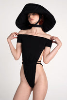 Siyah Derin Dekolteli Belden Bağlamalı Straplez Bodysuit