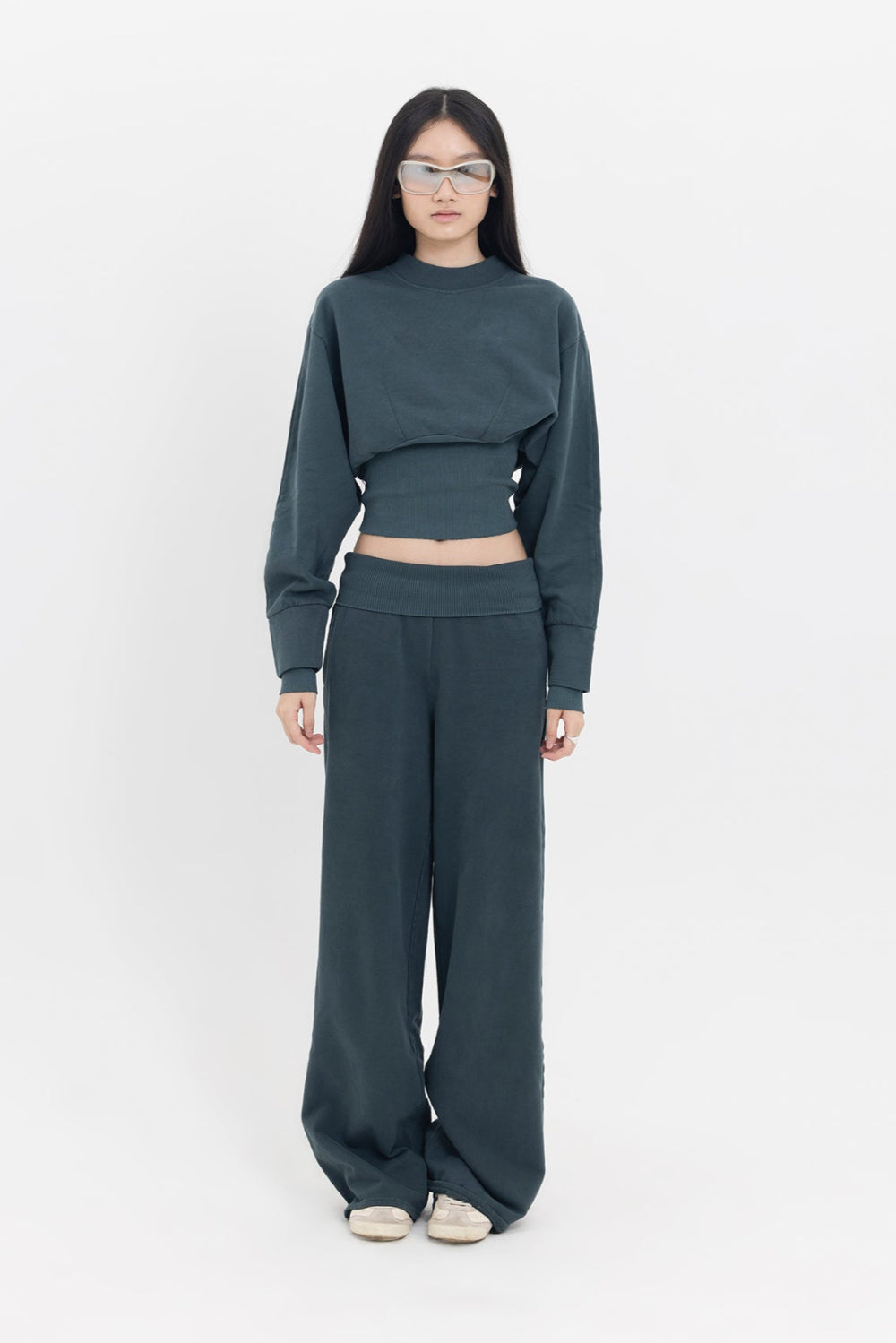 - Göğüs altına kadar uzanan ribana detaylı bel kısmı, vücudu zarif bir şekilde şekillendirerek güçlü ve feminen bir silüet oluşturuyor.