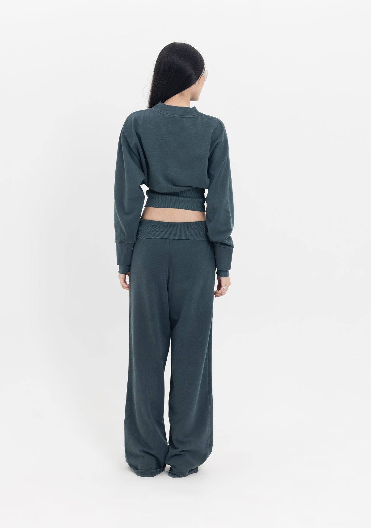 Yarım Balıkçı Yaka Lastik Bel Detaylı Pamuklu Antrasit Sweatshirt