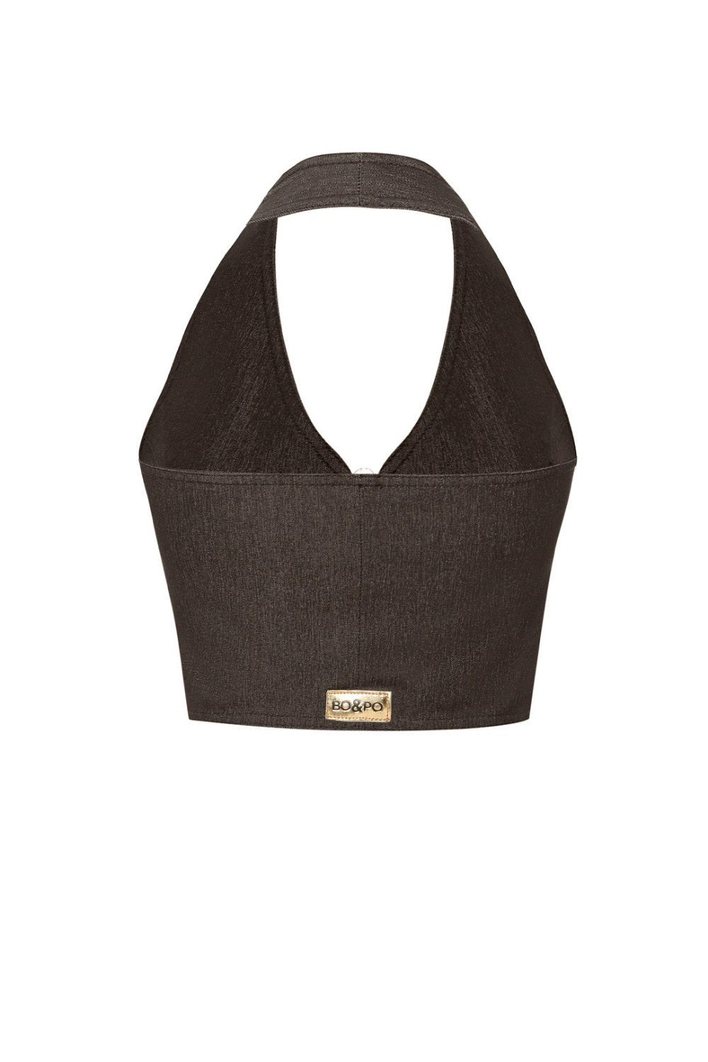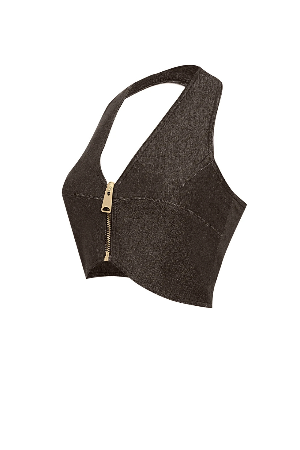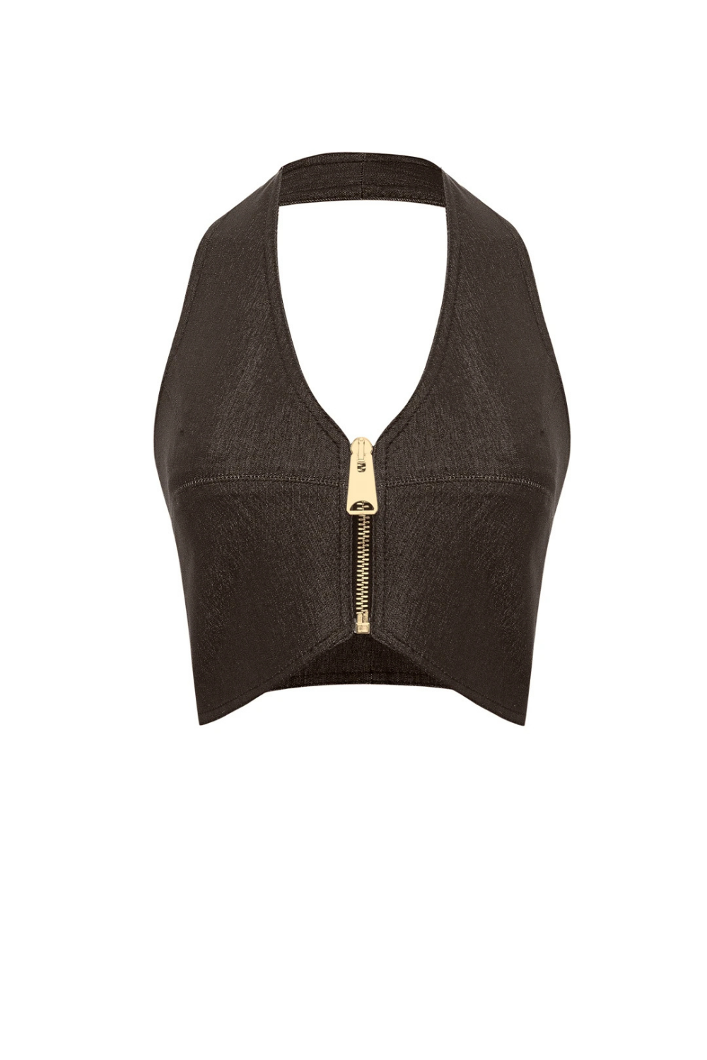 Gold Fermuarlı Boyundan Askılı Likralı Top