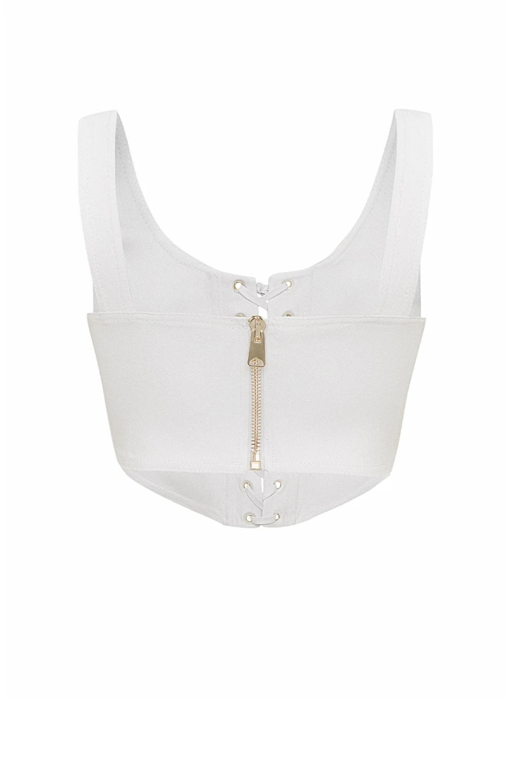 Modern tasarımıyla öne çıkan likralı, gold aksesuar detaylı denim top, günlük ve özel kombinlerinizi tamamlar. Gold aksesuar detayı, sade denim görünümüne zarif bir dokunuş katarken, likralı kumaşı sayesinde esnek, konforlu ve rahat bir kullanım sunar.