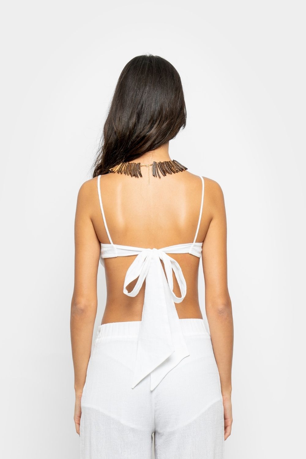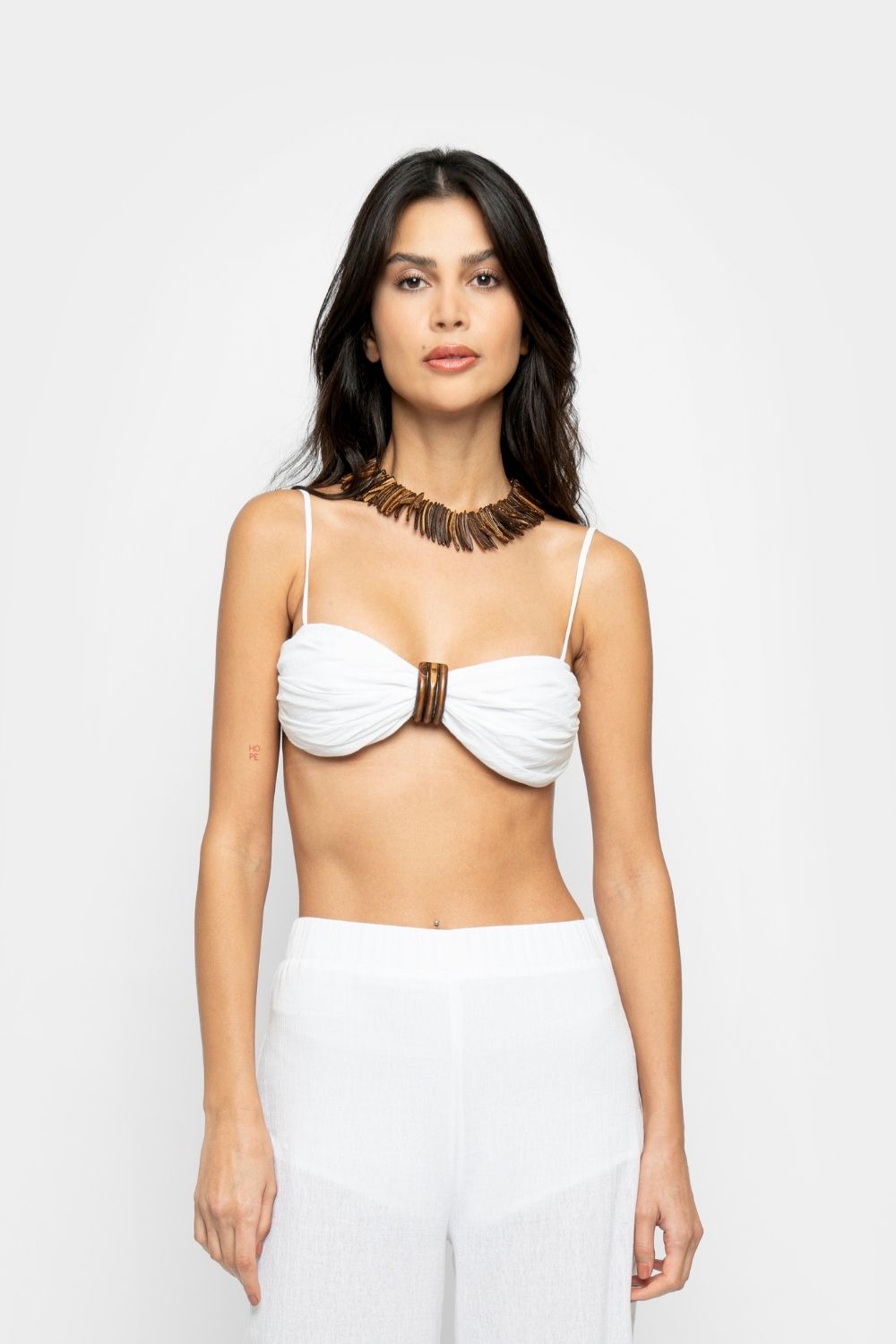 Bu zarif siyah büstiyer top, orta kısmındaki özel ahşap tokasıyla bakışları üzerine çekiyor.