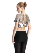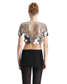 Halo Mirror Chain Top parlak metal disklerden el işçiliğiyle üretilmiş iddialı bir parçadır. Açık örgü silueti cesur bir görünüm sunarken hafif yapısı konforlu bir kullanım sağlar. Işığı her açıdan yakalayarak göz alıcı bir ışıltı yaratır.