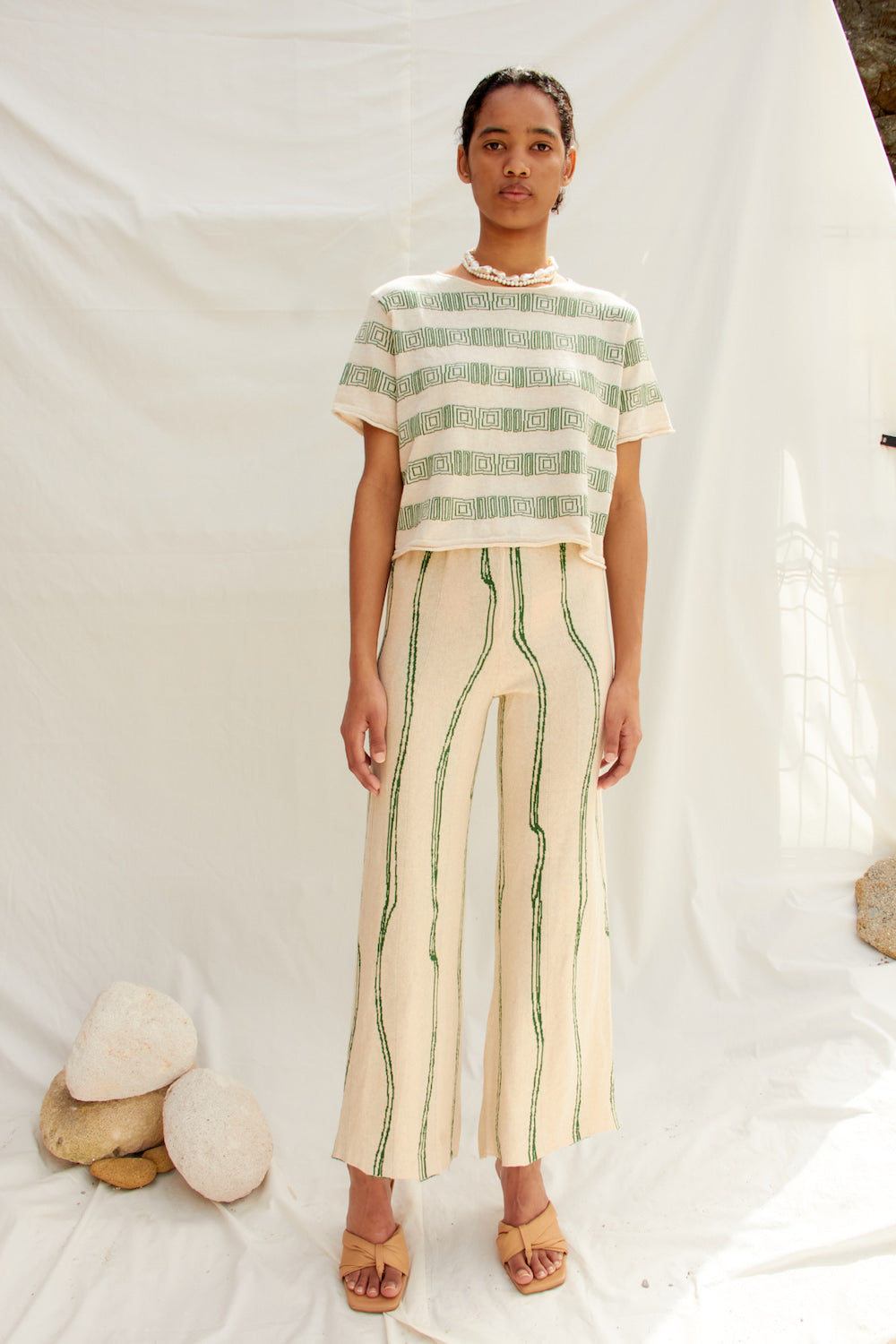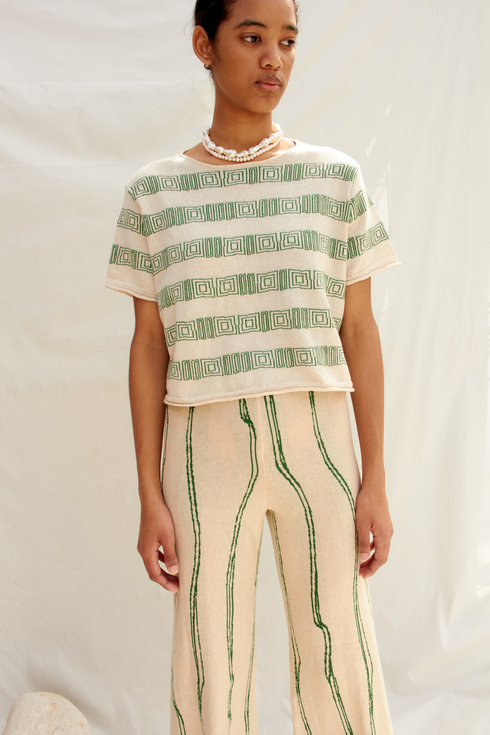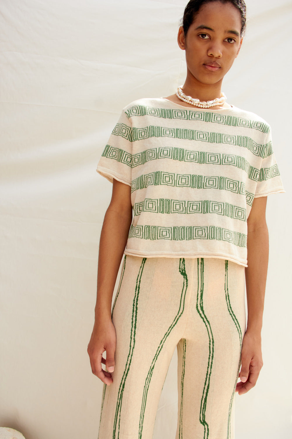 Kısa kollu, jakarlı, ince triko bluz
