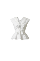 Derin V yaka bağlamalı etek ucu volanlı kolsuz bluz