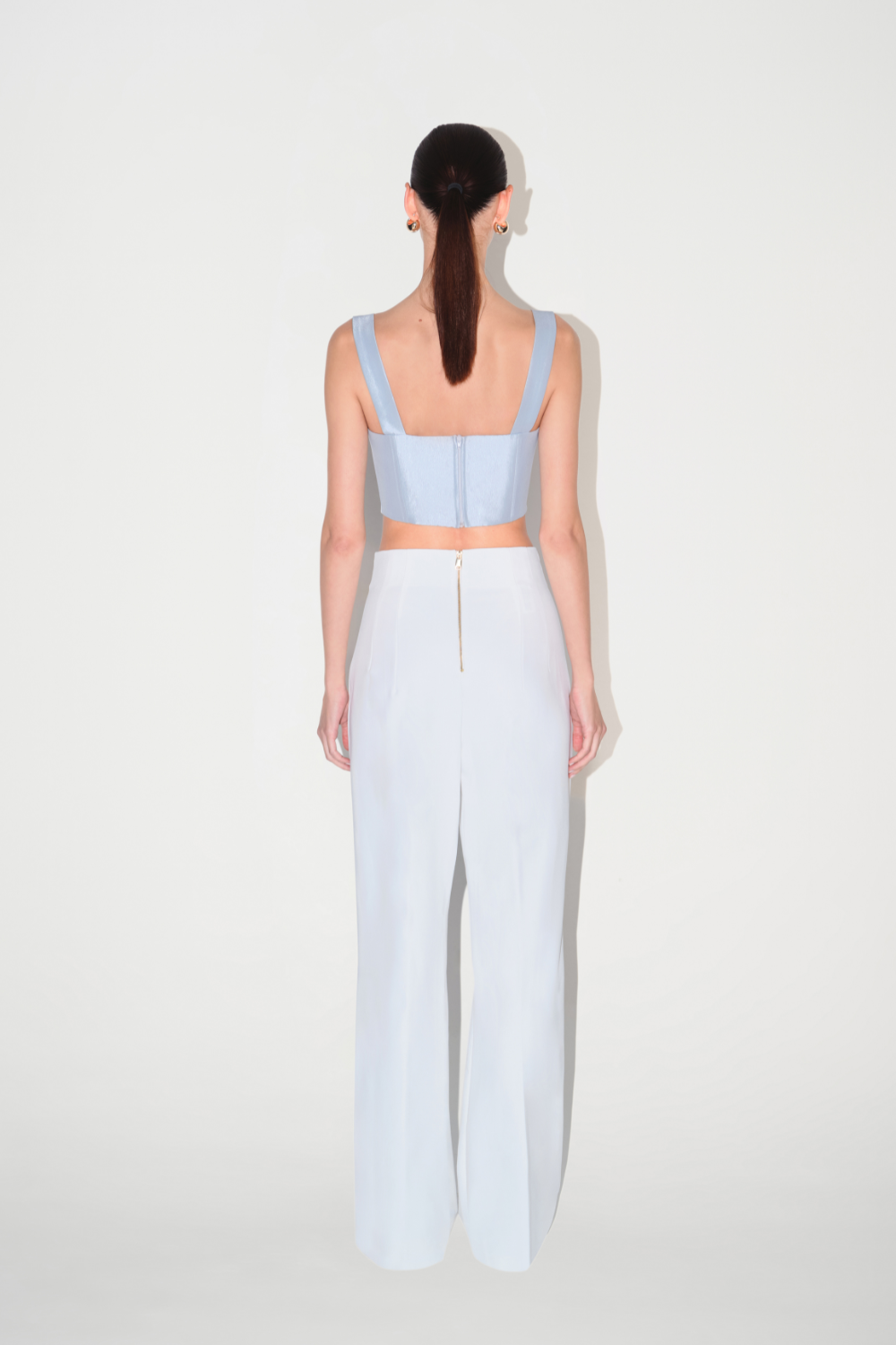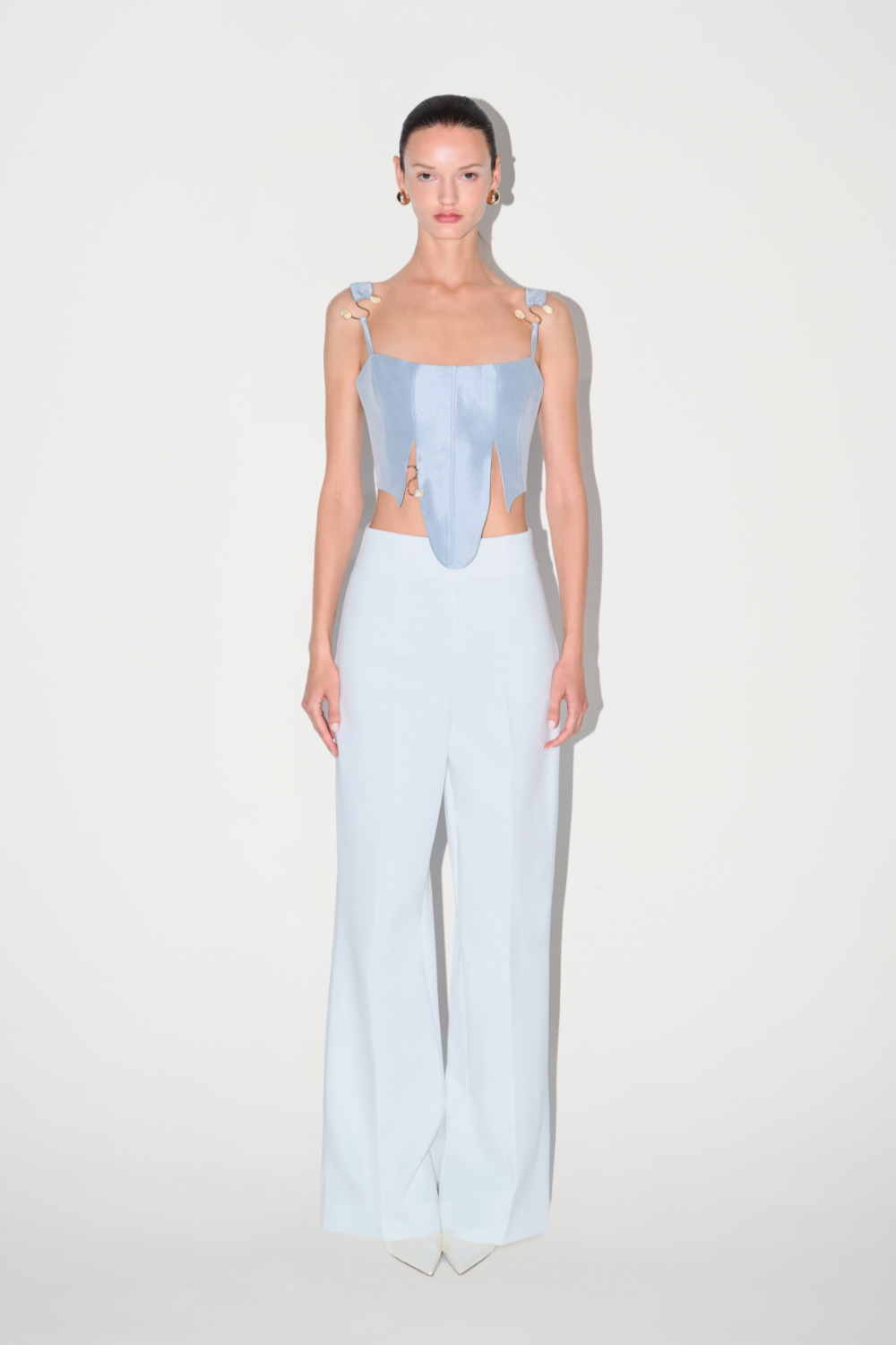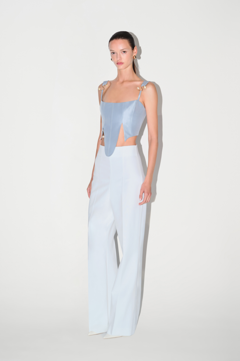 Amelia Korse, boncuklu aksesuar detaylarıyla zarif bir görünüm sunar. Kalıplı formu, öndeki yırtmaçlarla yumuşatılarak rahat bir hareket alanı yaratır.