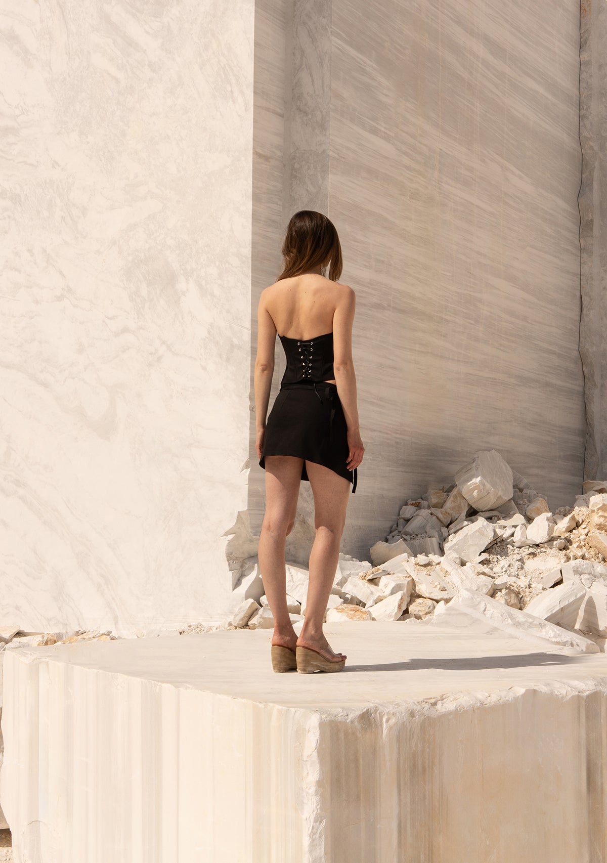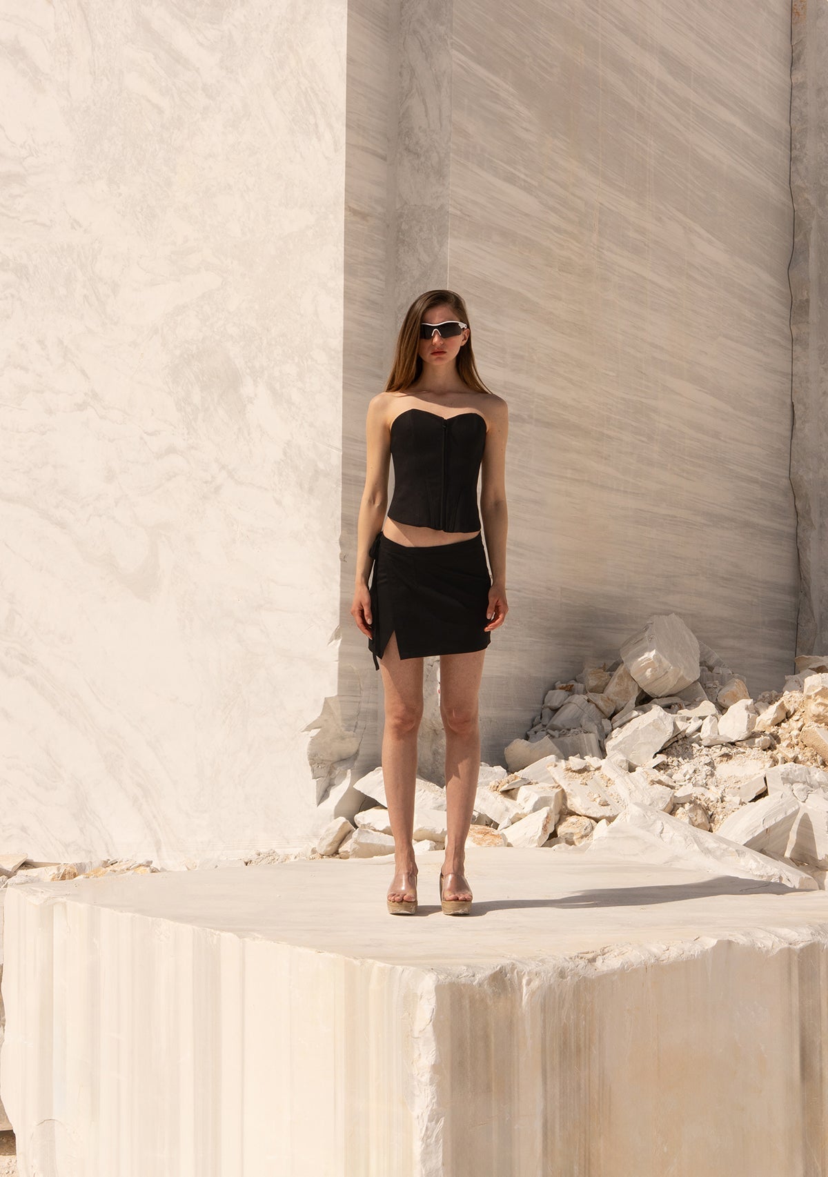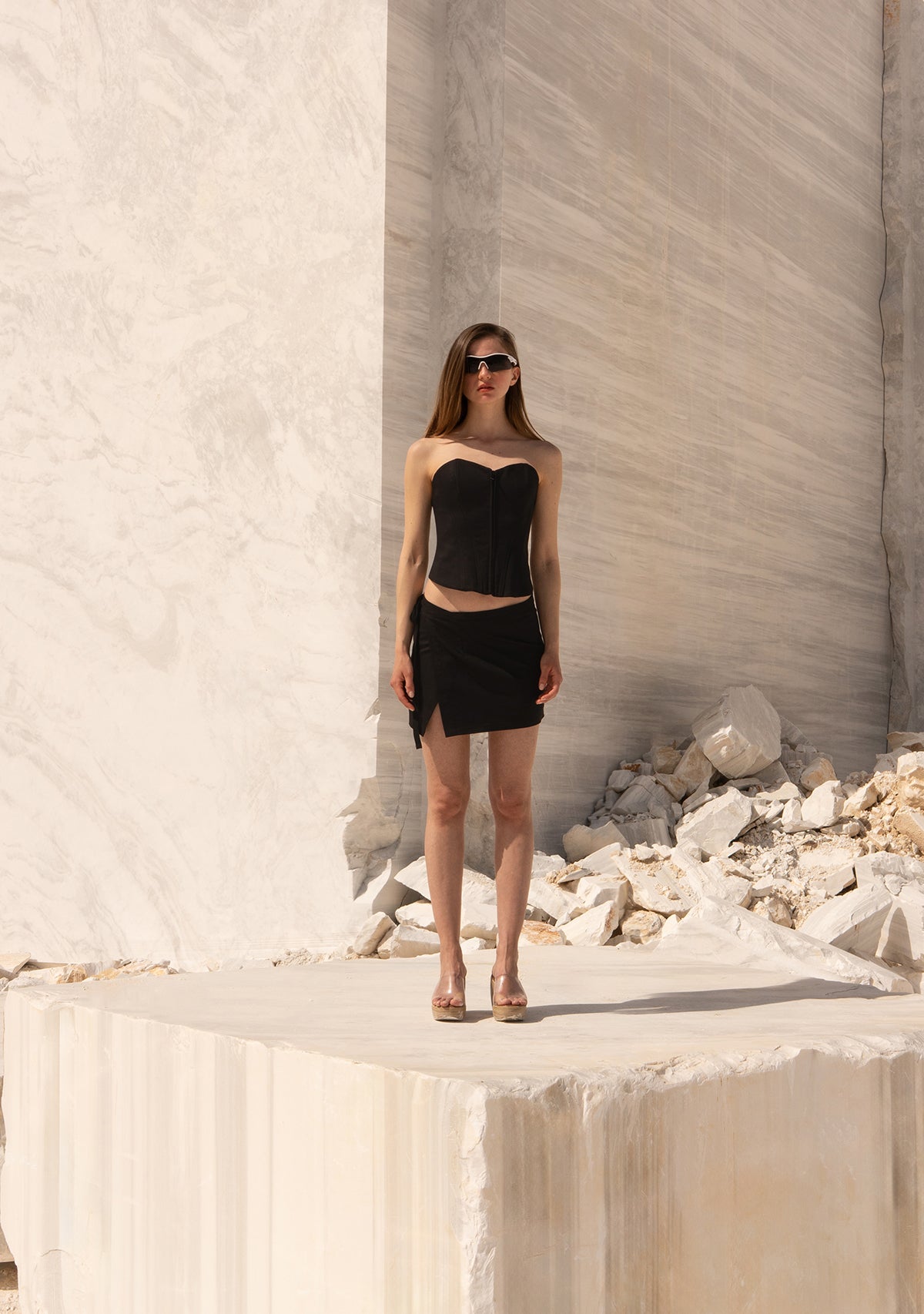 - Önü Fermuarlı Sırtı Ayarlanabilir Balenli Siyah Korse, pamuklu kumaşıyla hem konforlu hem balenleri sayesinde dik duruş sergiler.