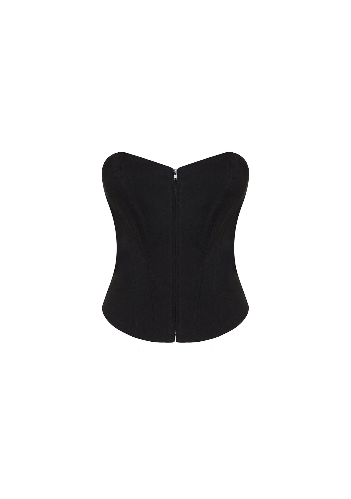 Önü Fermuarlı Sırtı Ayarlanabilir Balenli Siyah Korse