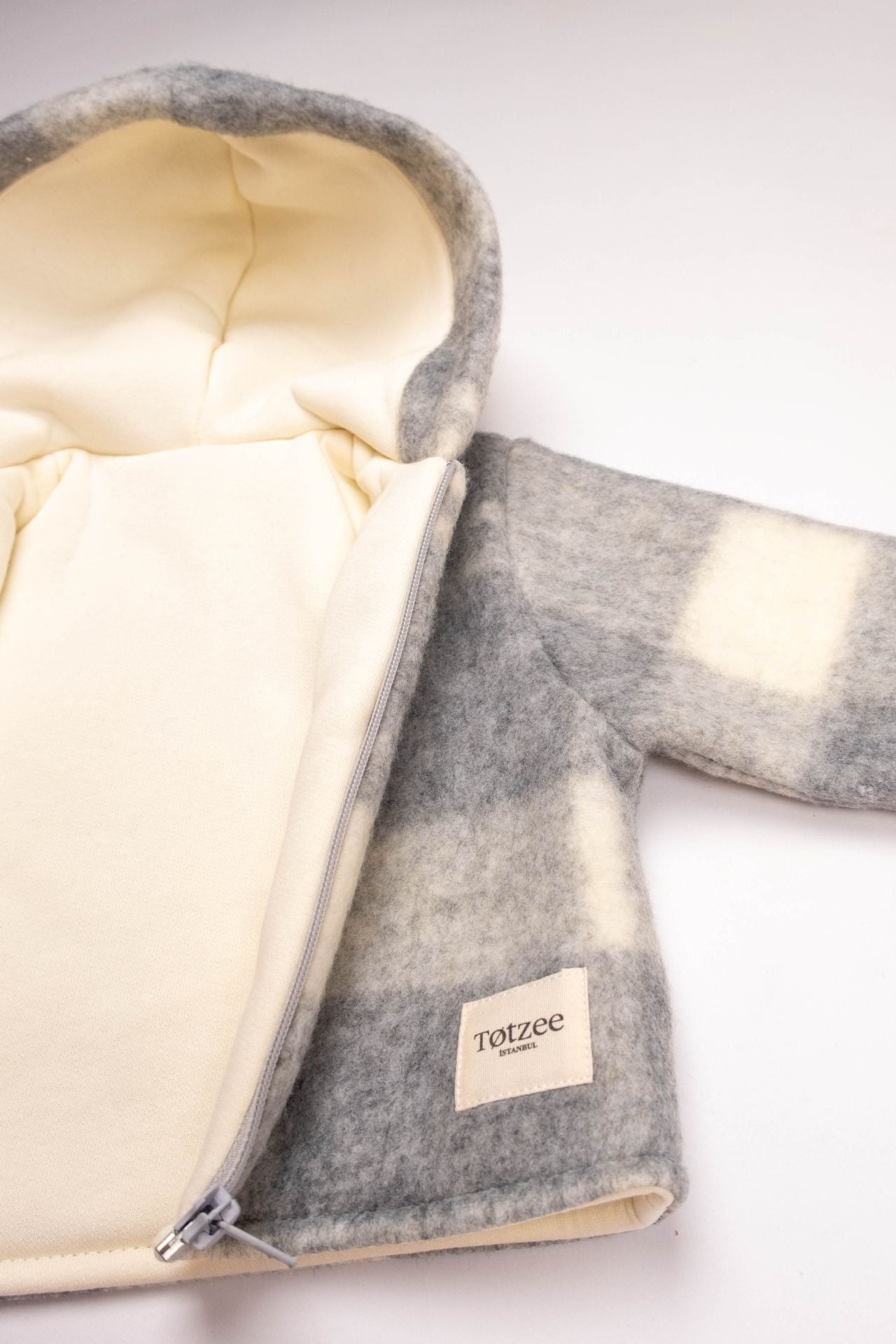 Bebeğinizin hassas cildine dost olacak şekilde tasarlanan Kapüşonlu Mont Ekose Gri & Krem, iç kısmında yer alan %100 pamuk astarıyla yumuşacık bir dokunuş sunar. Gün boyu konforlu hissettiren bu yapı, minik bedenlere huzur verir.