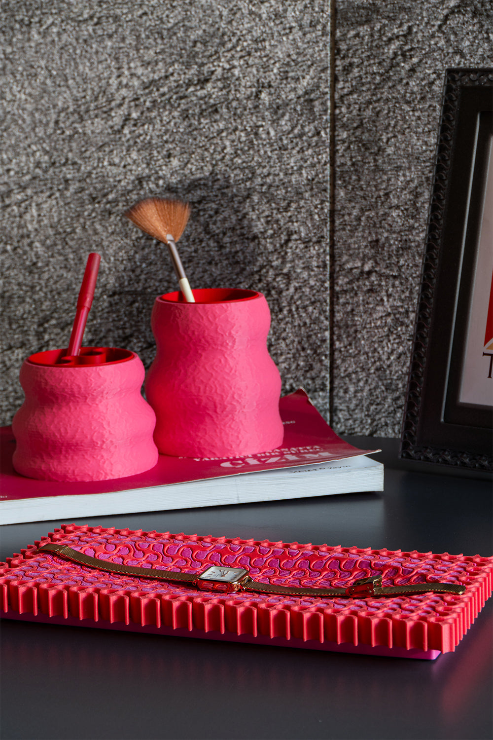 CILIA dekoratif masa düzenleyici, masanızda biriken küçük eşyaları düzenlemek için şık ve pratik bir çözümdür. Saat, telefon, anahtar ya da takı gibi günlük kullanım eşyalarını kolayca bir arada tutarak masaüstü düzenleyici işlevi görür. Böylece hem çalışma alanınızda hem de evinizin farklı köşelerinde dağınıklığı ortadan kaldırır.