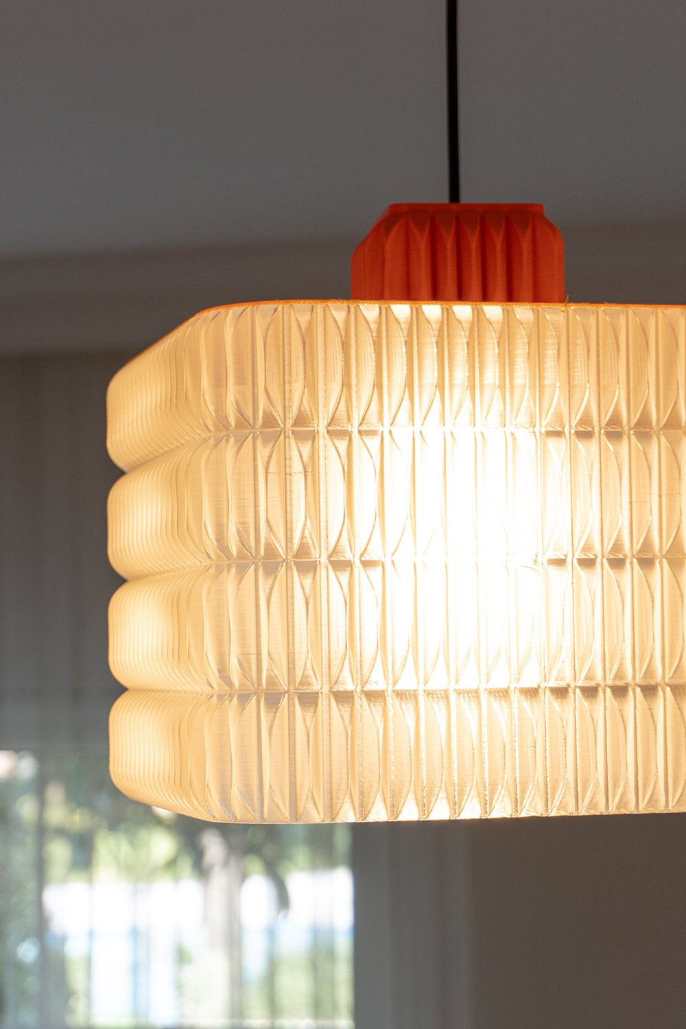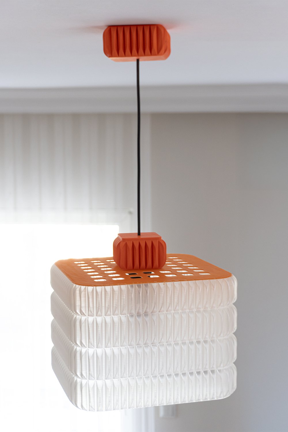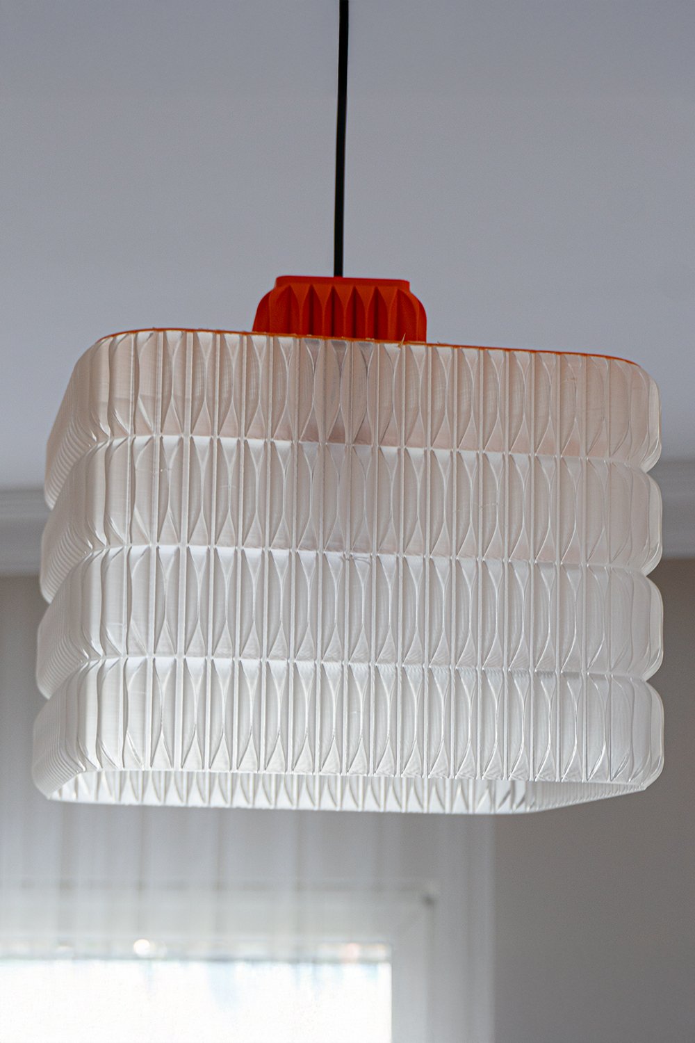 3D yazıcı kullanılarak üretilen bu avize, geleneksel avizelere göre daha hafif olduğu için daha güvenli bir kullanım sunar.
