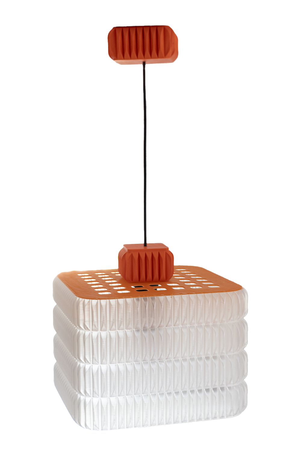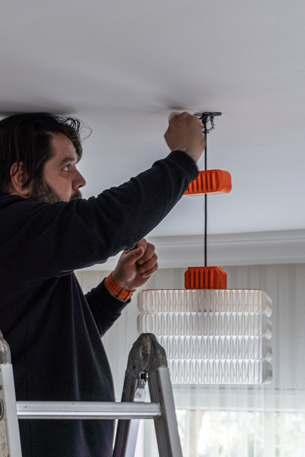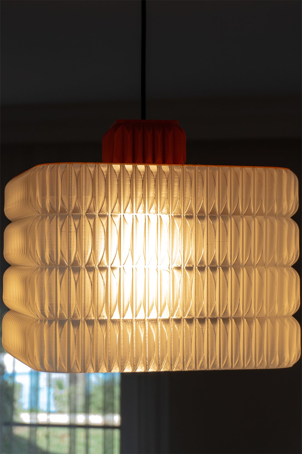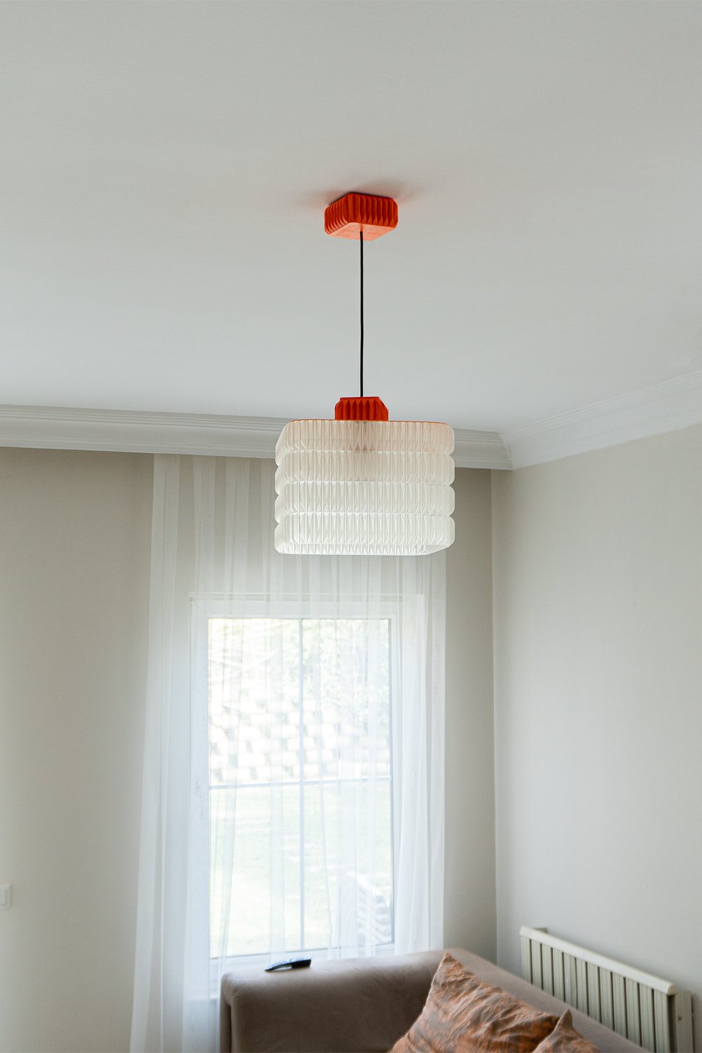 3D yazıcı kullanılarak üretilen bu avize, geleneksel avizelere göre daha hafif olduğu için daha güvenli bir kullanım sunar.