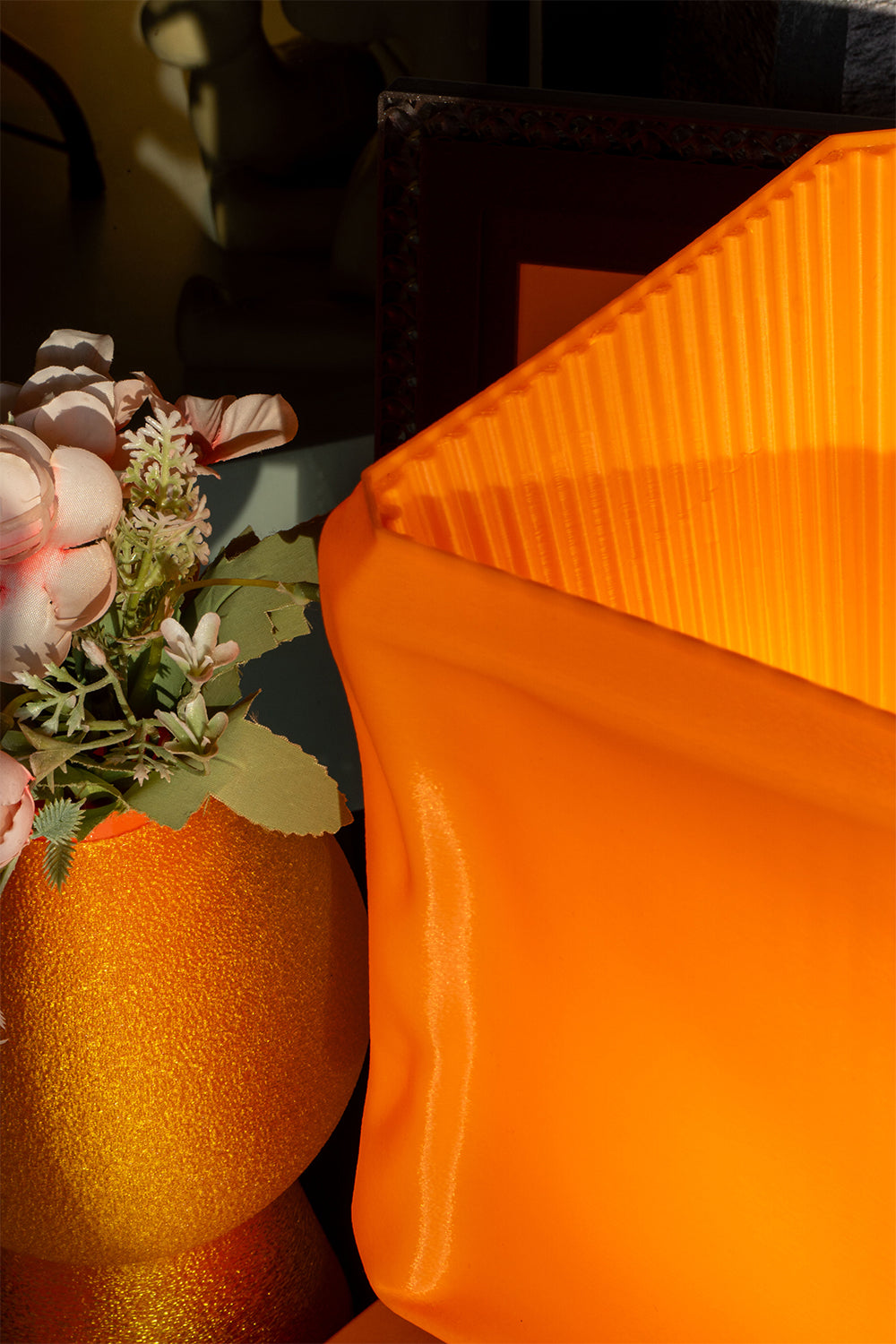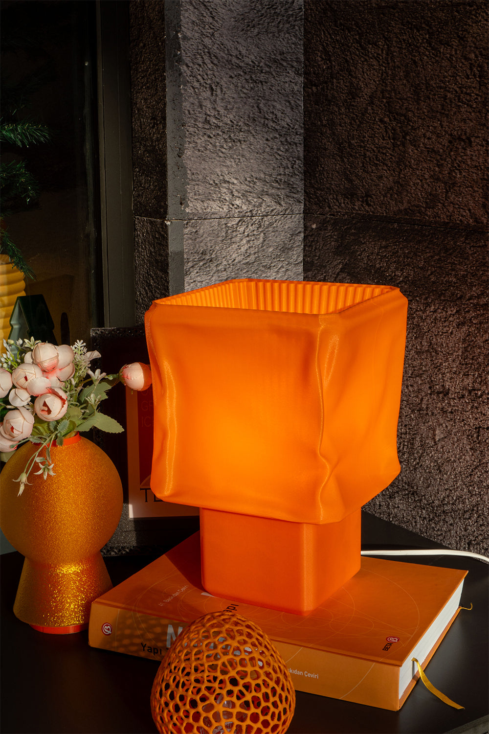 FLUX Masa Lambası, küp formunun net geometrisini el ile şekillendirilen dalgalı gövdesiyle bir araya getirerek sıcak, modern ve heykelsi bir ışık deneyimi sunar.Kumaş benzeri yüzeye sahip lamba şapkası, ışığın yumuşak ve homojen bir şekilde dağılmasını sağlayarak bulunduğu ortama sakin ama etkileyici bir atmosfer katar.