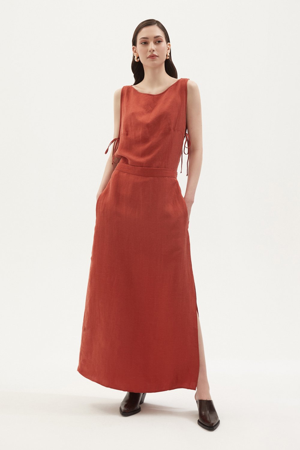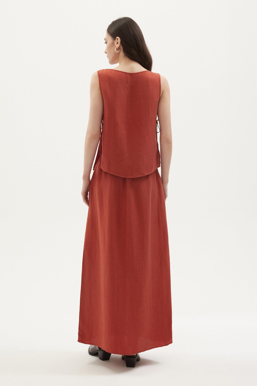 Poppy – Yan Bağlı Kolsuz Bluz – Kiremit