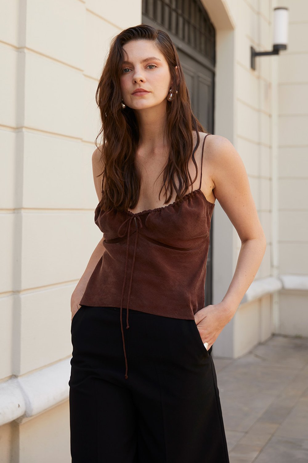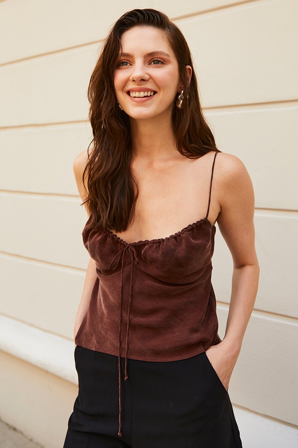 Lüks zarafeti teninizde hissedin. Sunflower İp Askılı Bluz, yumuşak ipeksi dokusu ile giydiğiniz andan itibaren size ve cildinize hak ettiğiniz değeri verecek Vegan Cupro kumaştan dikilmiştir. Hassas ciltlere karşı nazik olmasının yanında çok gözenekli yapısı ile cildinize nefes alması için de olanak sağlar. Sunflower İp Askılı Bluzu her giydiğinizde ipek zarafetini, Vegan Cupro kumaş lüksünü ve Towdoo şıklığını üzerinizde hissedecek ve yansıtacaksınız.