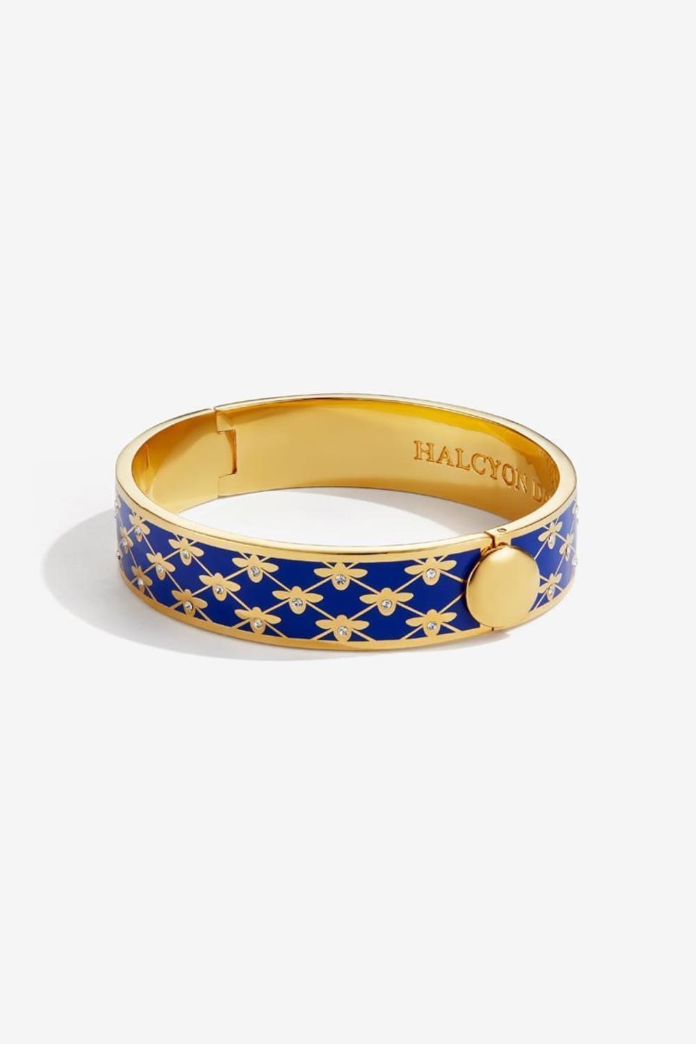 13mm Bee Sparkle Trellis - Deep Cobalt- Gold - Hinged Bangle