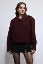 Zarif pile detayları ve güçlü bordo rengiyle Bordo Pile Detaylı Dik Yaka Mont, modern şehir stiline sofistike bir dokunuş katar. Relax fit kalıbı rahat bir kullanım sunarken, kısa boy kesimi bele oturan pantolon ve eteklerle dengeli bir siluet oluşturur. Dik yaka formu montun modern ve güçlü duruşunu vurgular.