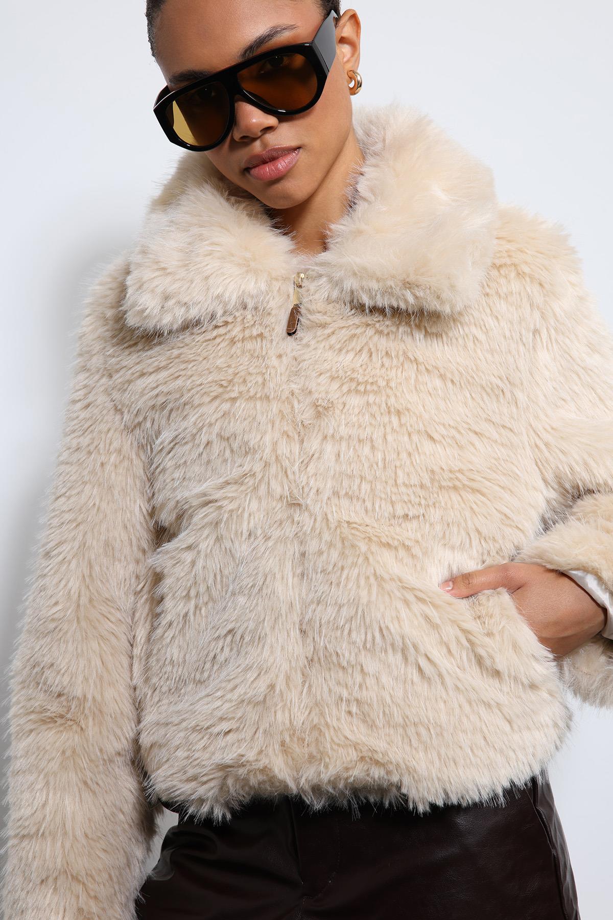 Zarif ekru tonu ve yumuşak peluş dokusuyla Ekru Peluş Görünümlü Mont, kış kombinlerine aydınlık ve sofistike bir hava katar. Relax fit kalıbı sayesinde rahat bir kullanım sunarken, orta boy kesimi günlük stil için dengeli ve modern bir siluet oluşturur. Ayaksız yaka detayı, montun sade ve zamansız tasarımını tamamlar.