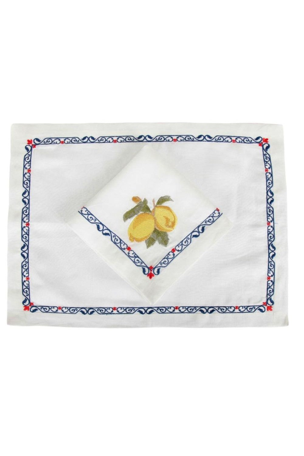 %100 Keten Üzerine Mavi Kenar Nakışlı Amerikan Servisi 4 Adettir.