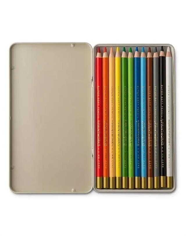 12 farklı renk Pigmentli renkli kalemler Metal saklama kutusu Dengeli ve akıcı uygulama Çizim, eskiz ve boyama için uygun