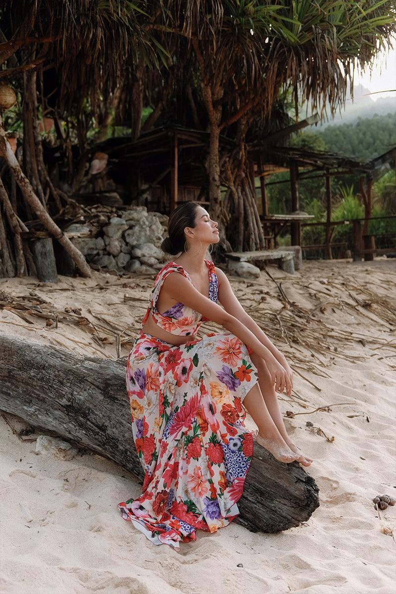 Dreamland Büstiyer, yaz çiçeklerinin enerjisi ile doğanın harikaları ışığında tasarlanmıştır. Çiçek tasarımı kır çiçeklerinin canlı renkleriyle dans ederken, ekru arka plan dokunulmamış bir plajın yumuşak kumlarını hatırlatan uyumlu bir senfoni yaratıyor. Yazın en özel etkinliklerinde kır çiçeği ruhunu taşıyan Dreamland Büstiyer ile doğayla ve yaz neşesiyle buluşun!