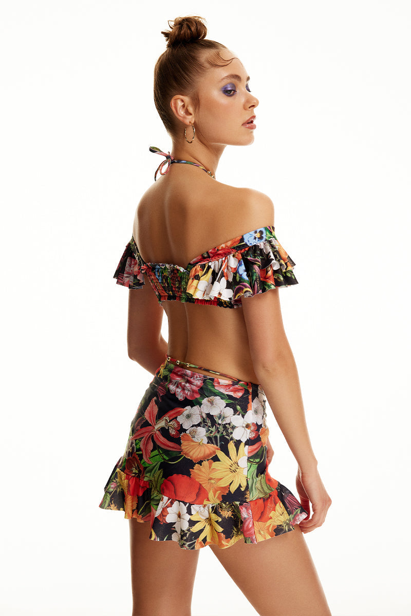 Reverie Etek, büyüleyici çiçek desenli, canlı fuşya rengi ve eğlenceli fırfır detaylarıyla yazın canlı güzelliklerinden ilham alıyor. Doğanın tüm harikalarının hayali, özgür bir ruhun özü ve doğal güzelliğin somut örneği; Reverie Etek yazın temsil ettiği her şeyi eşsiz Luna B tasarımı ile bir araya getiriyor!