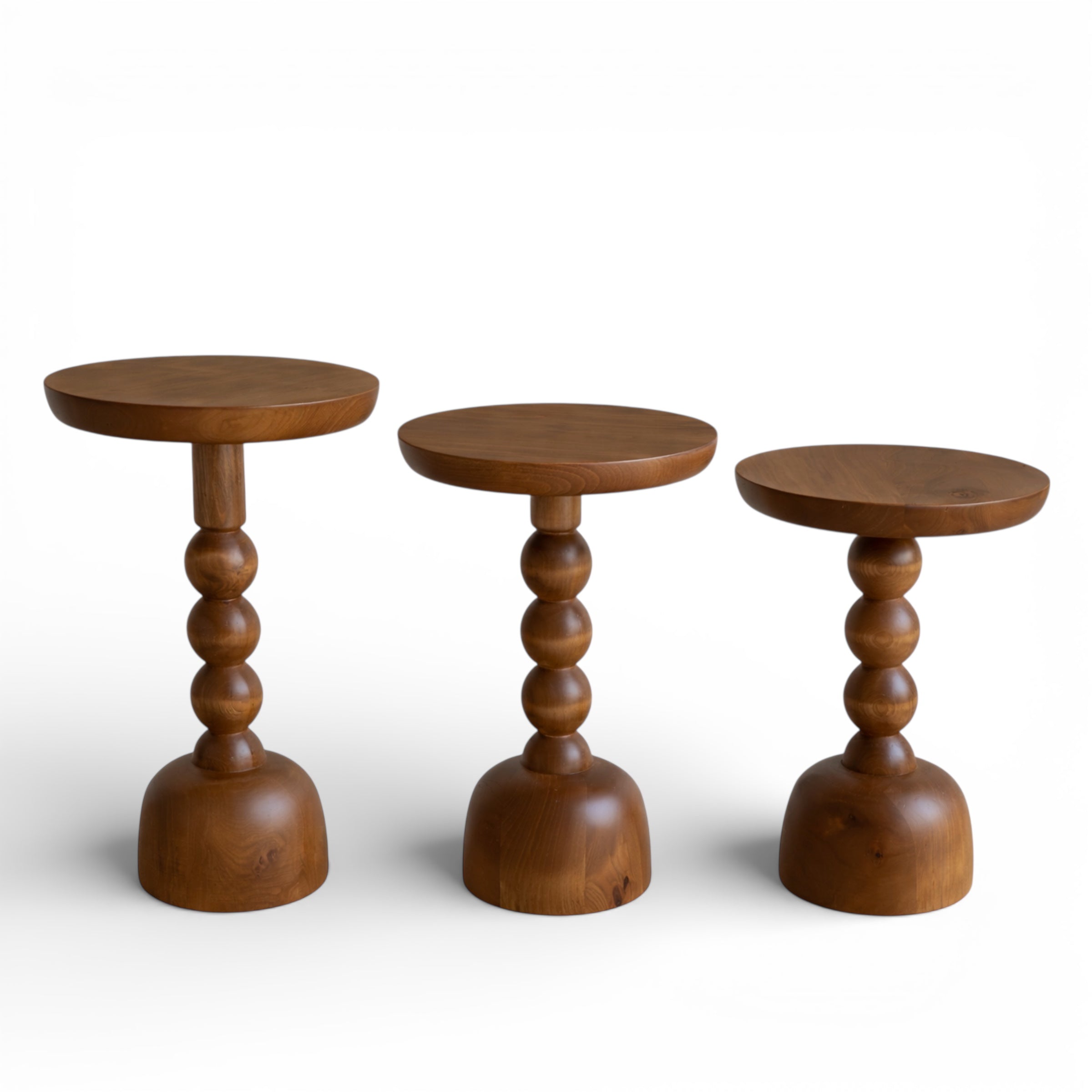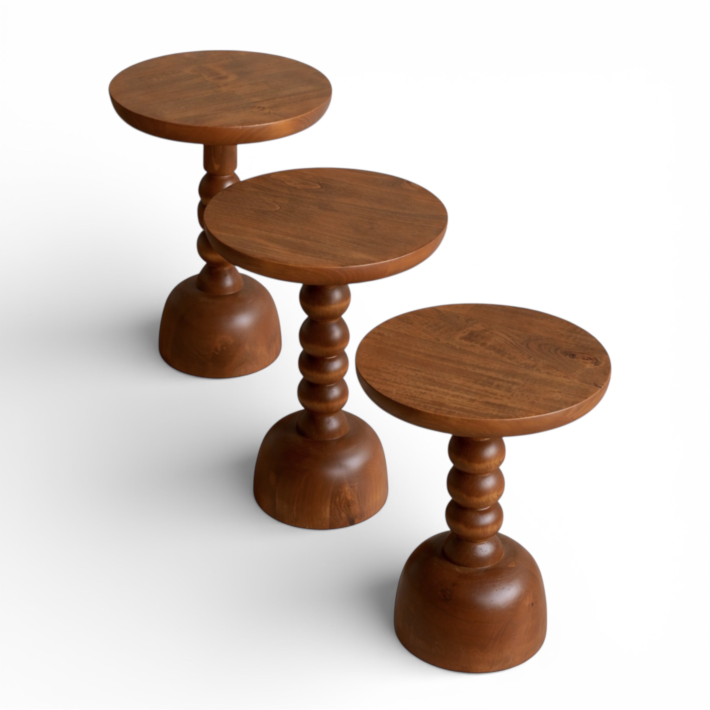 Küresel modüllerden oluşan ritmik gövdesi ve masif ahşap tablasıyla Icon Sehpa, zamansız bir tasarım objesidir. Dengeli oranları sayesinde hem görsel hem yapısal olarak güçlü bir duruş sergiler. Doğal ahşap dokusu, her üründe kendine özgü damar geçişleri sunarak benzersiz bir yüzey karakteri oluşturur. Tekli kullanımda odak noktası yaratırken, farklı yükseklik seçenekleriyle birlikte kullanıldığında heykelsi bir kompozisyona dönüşür.