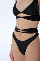 Victoria Siyah Yüksel Bel Kemerli Dantel Tanga