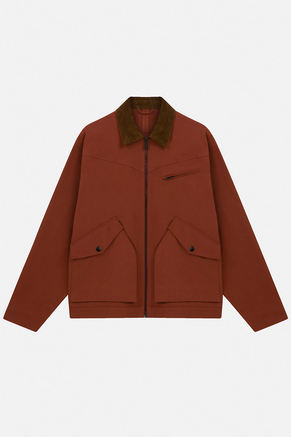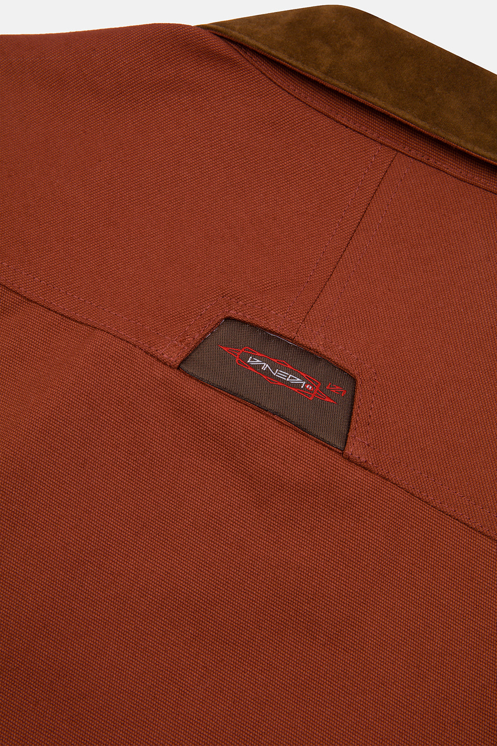 Dayanıklı ve şık Vaneda workwear ceket, bakır renkli kanvas kumaşı ve kontrast süet yakasıyla öne çıkar. Hem işlevsel hem de modern tasarımıyla günlük kullanım için idealdir.