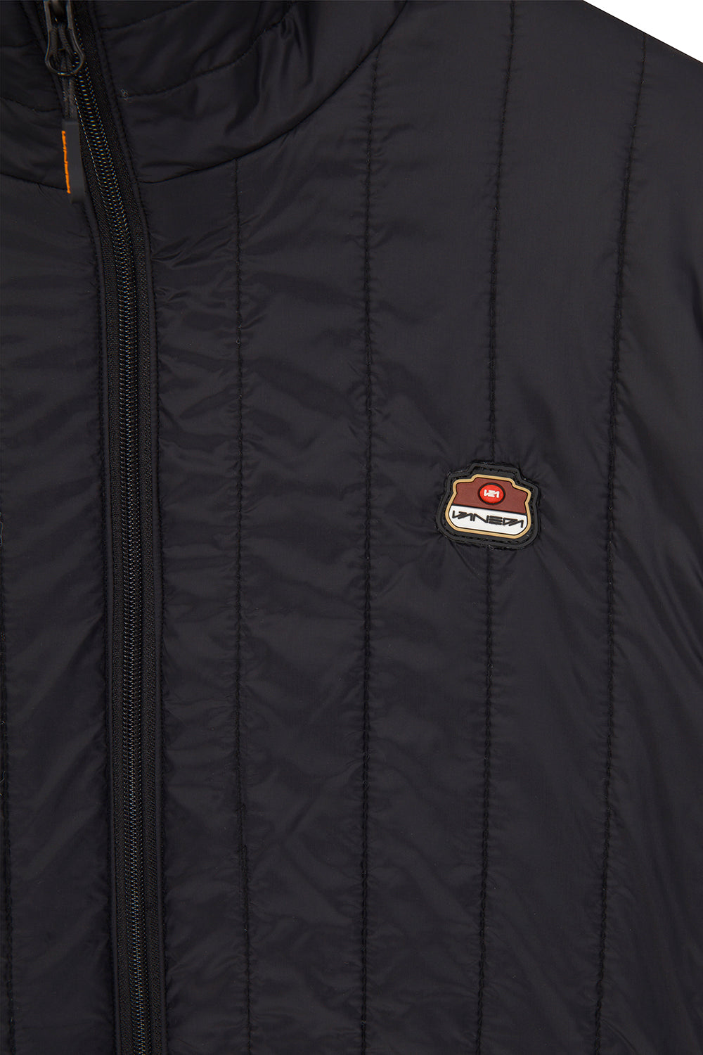 Kumaş & Dolgu: Siyah, hafif dik yakalı, sentetik dolgulu