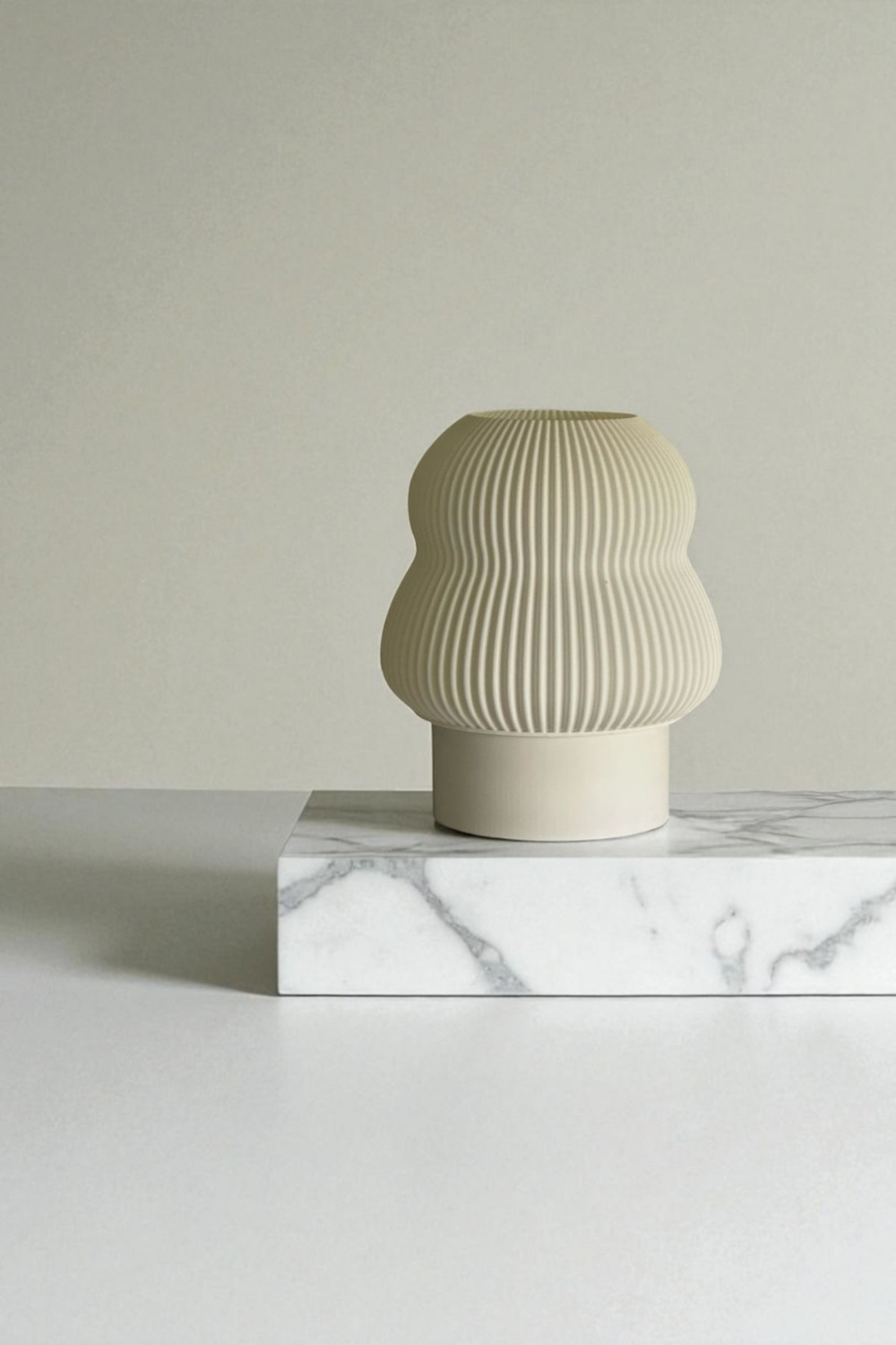 Belly Form masa aydınlatması, organik hatları ve dikkat çekici çizgisel dokusuyla heykelsi bir duruş sergiler. Yumuşak, boğumlu formu, ışıkla buluştuğunda bulunduğu ortama sıcak, davetkar ve dinamik bir atmosfer yayar. Bu özgün Vinterro tasarımı, yalnızca işlevsel bir aydınlatma çözümü sunmakla kalmaz, aynı zamanda mekanınıza estetik bir değer ve sanatsal bir dokunuş katar.